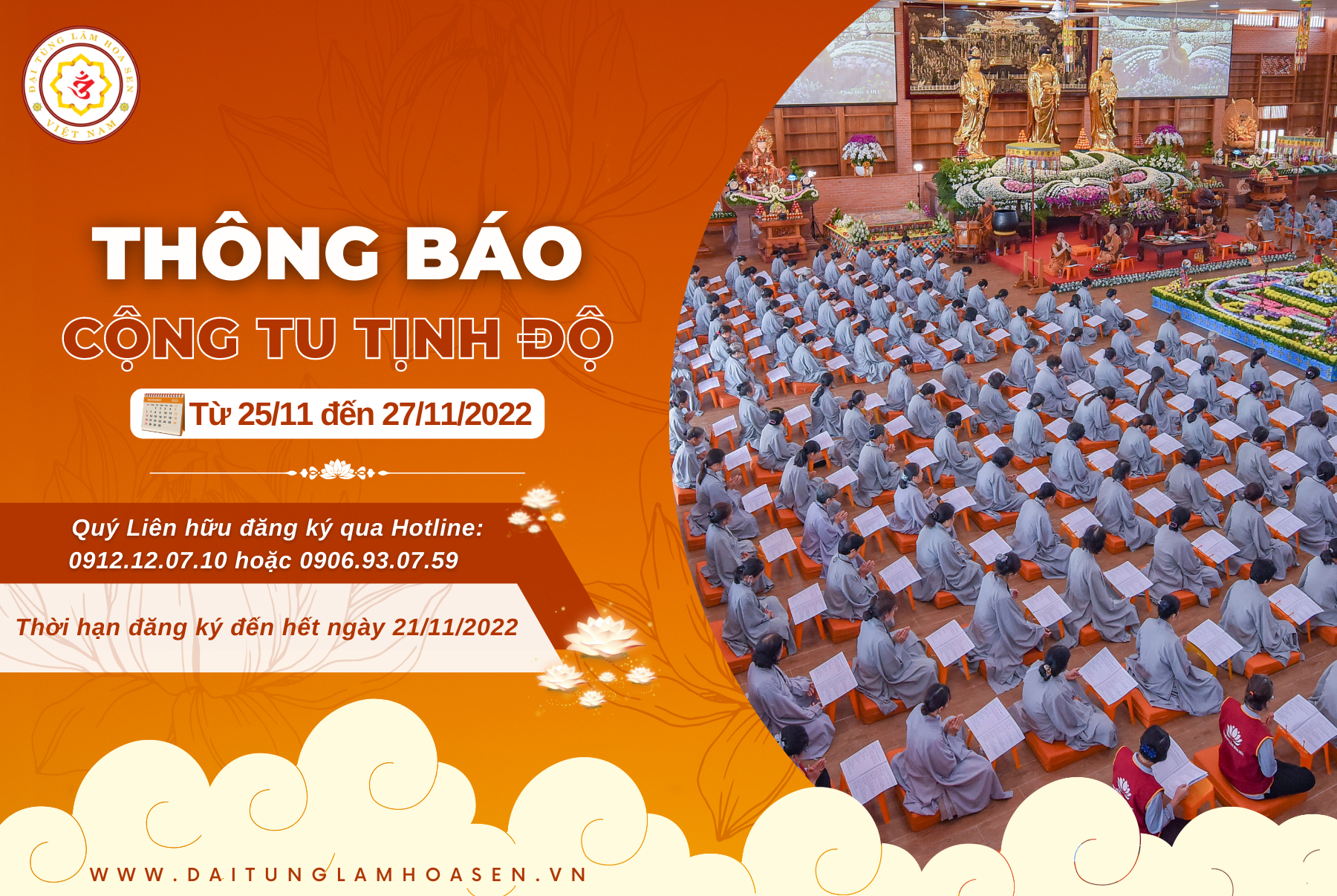 Thời gian: Khóa tu diễn ra từ ngày 25/11/2022 đến ngày 27/11/2022 (Nhằm ngày 02/11-04/11 năm Nhâm Dần)