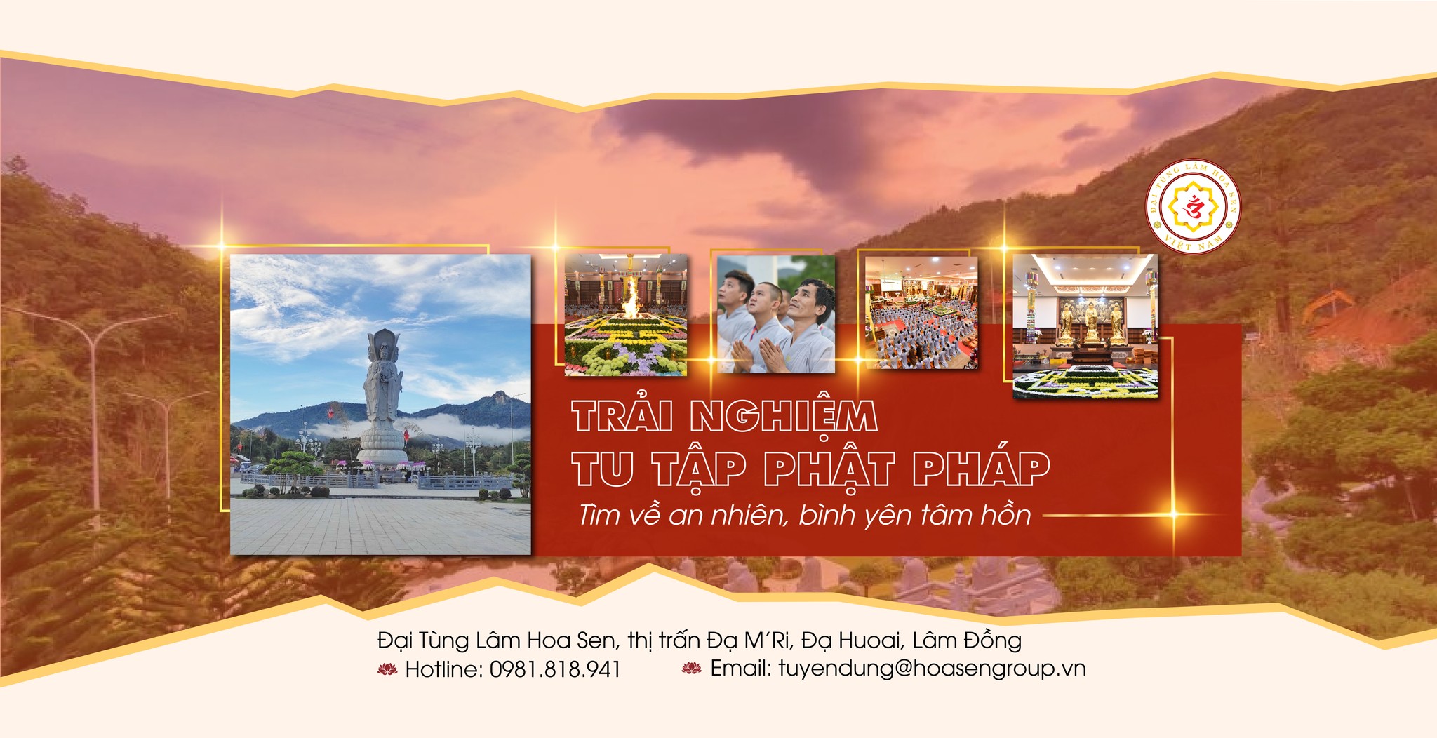 👉 Chuyến trải nghiệm tu tập Phật pháp tại Chùa Đại Tùng Lâm Hoa Sen hoàn toàn MIỄN PHÍ.