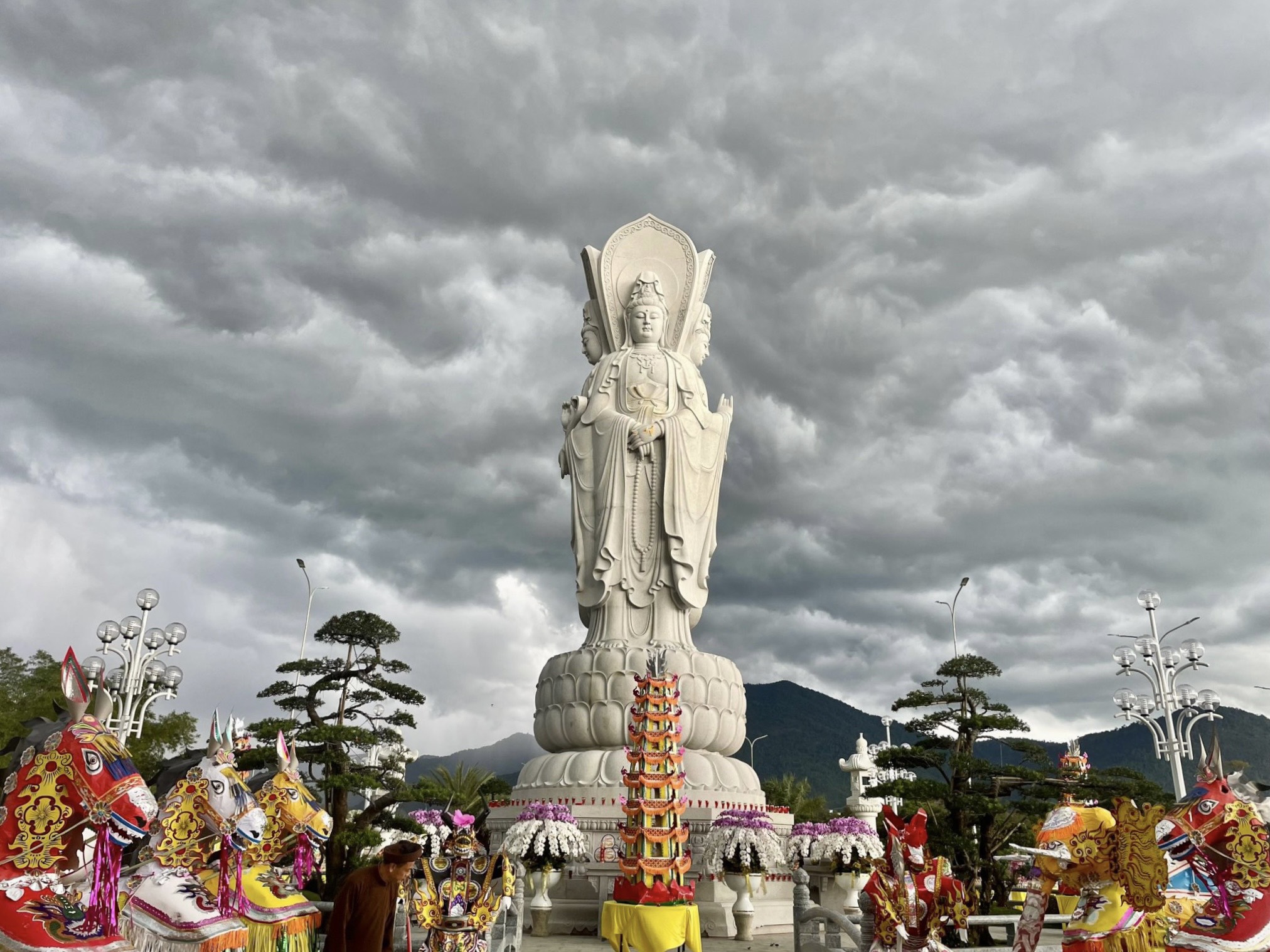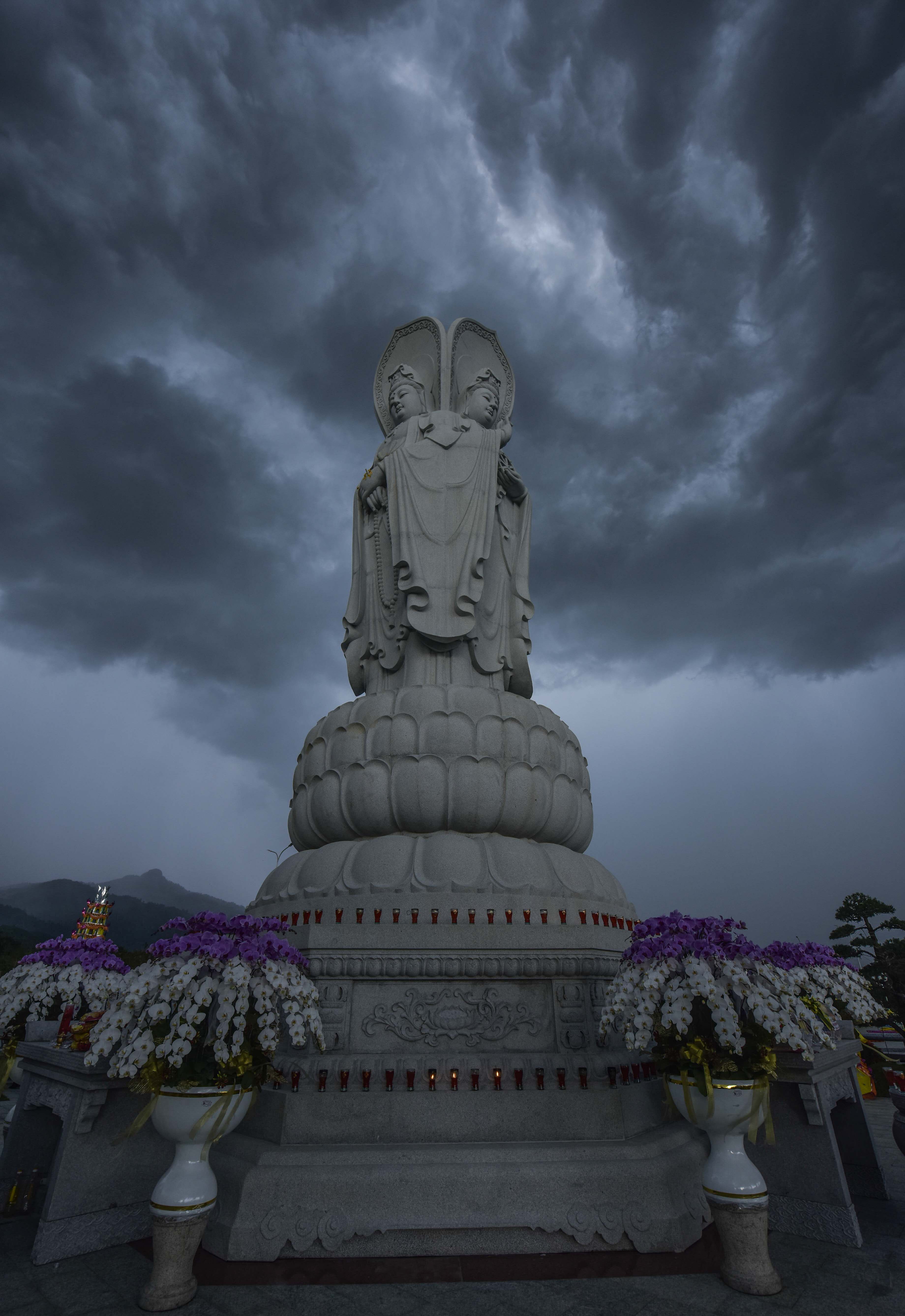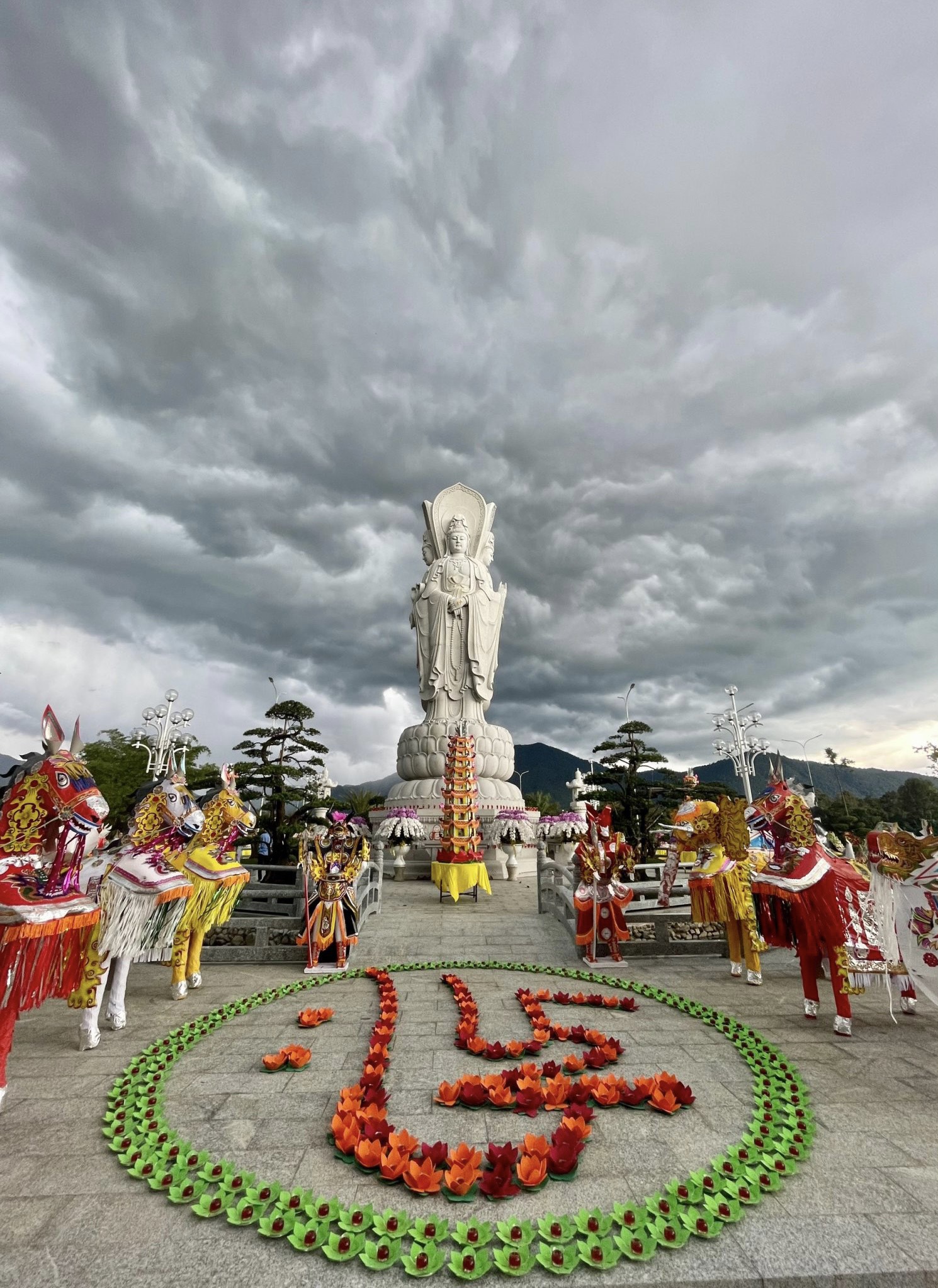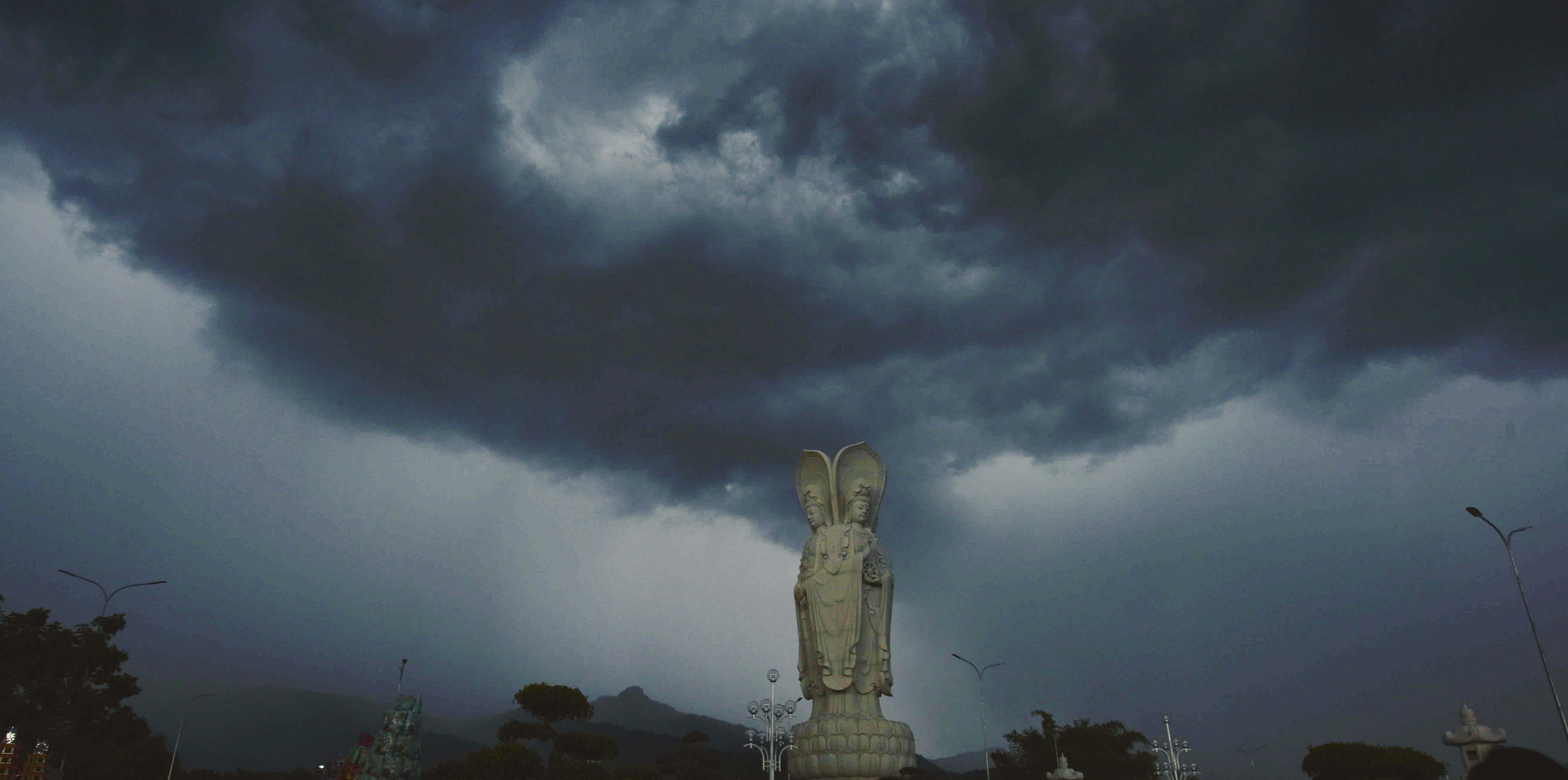 Thời khắc cử hành nghi lễ, hiện tượng thời tiết biến đổi một cách lạ kỳ, bầu trời bỗng tối sầm lại và chùng hẳn xuống, những quầng mây trên khoảng trời bao la chuyển sắc, cuồn cuộn kéo về tụ hội xoay quanh Thánh Tượng Quán Thế Âm Bồ Tát Tứ Diện.
