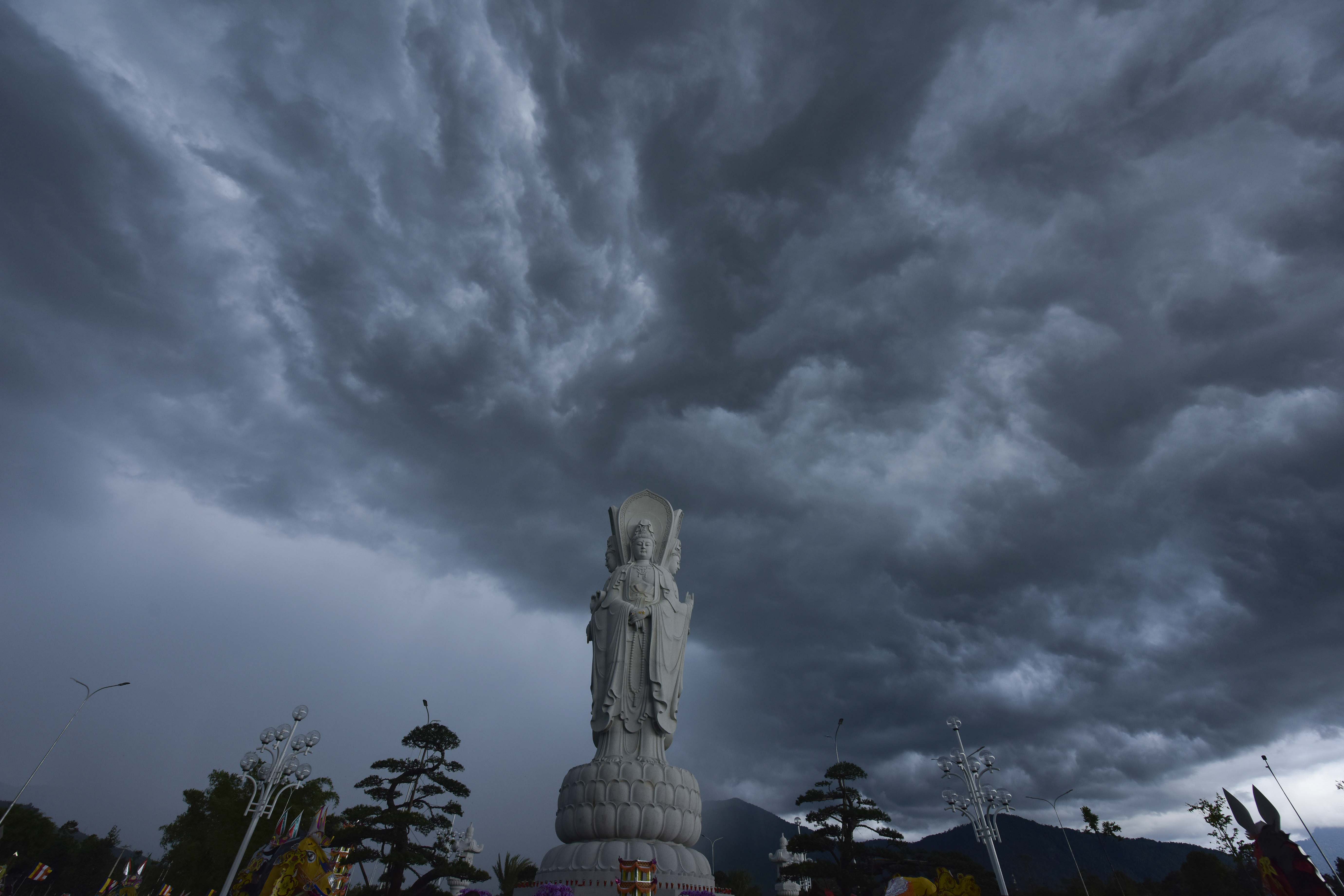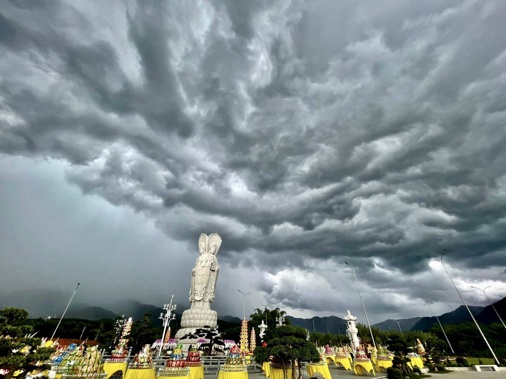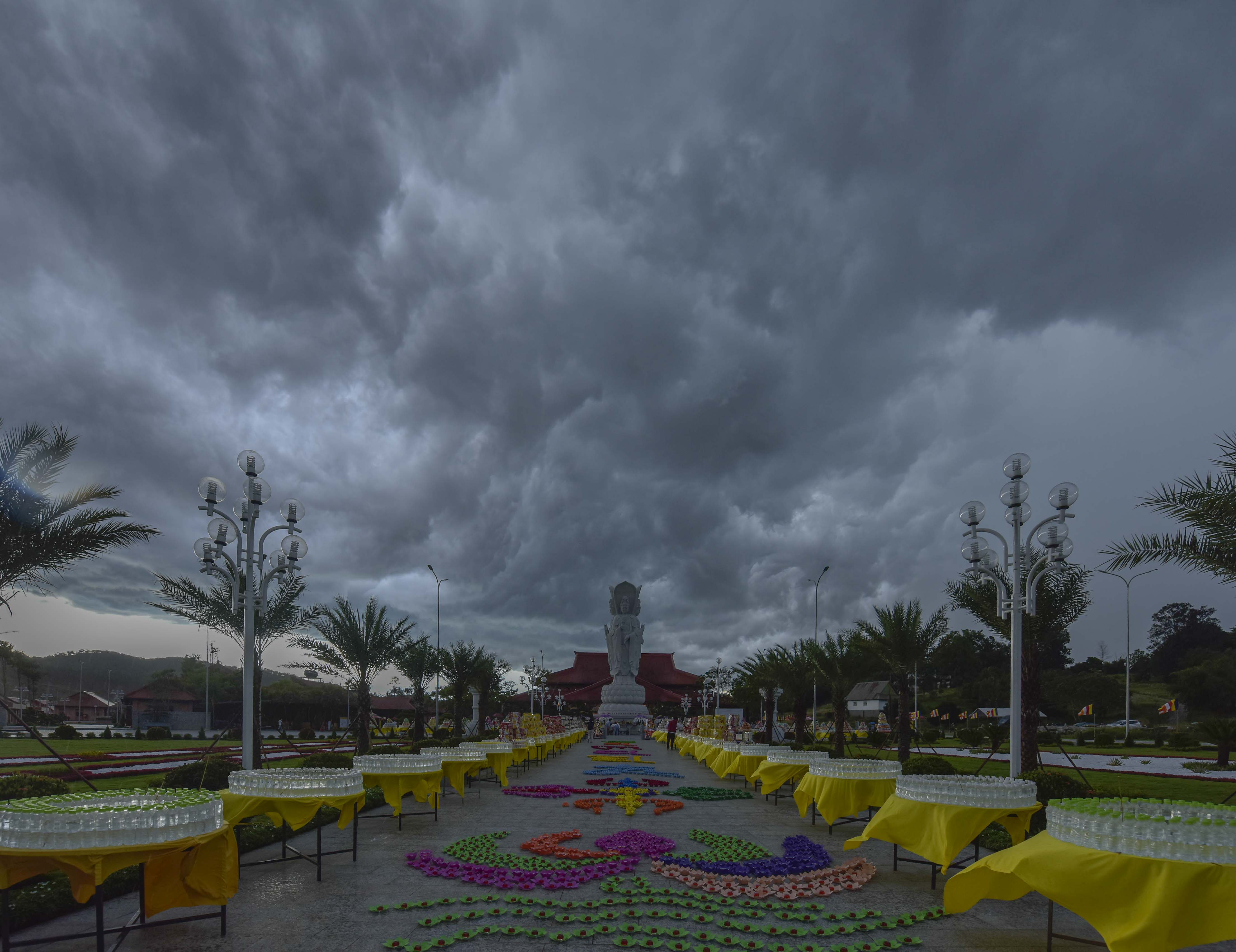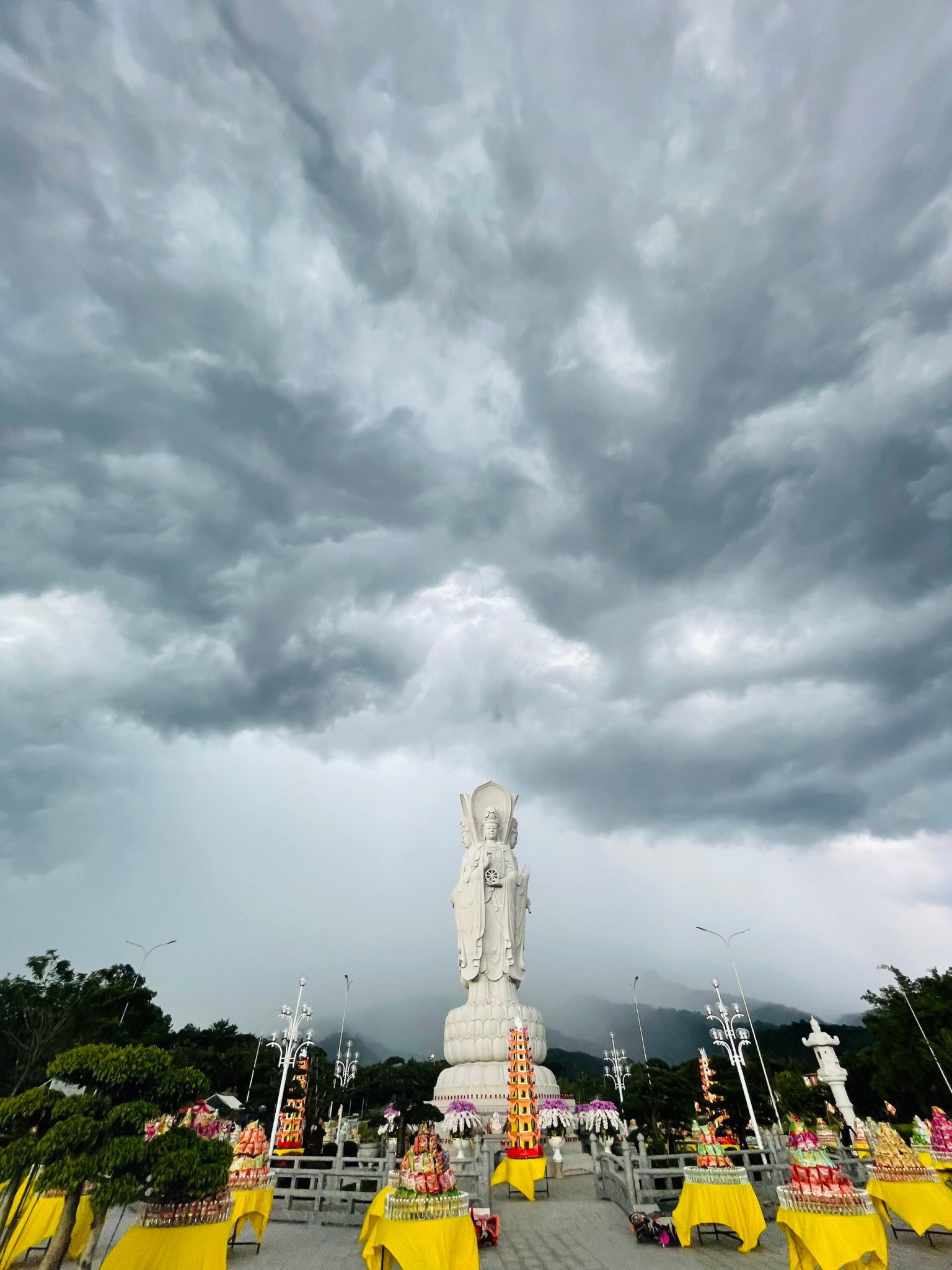 Thời khắc cử hành nghi lễ, hiện tượng thời tiết biến đổi một cách lạ kỳ, bầu trời bỗng tối sầm lại và chùng hẳn xuống, những quầng mây trên khoảng trời bao la chuyển sắc, cuồn cuộn kéo về tụ hội xoay quanh Thánh Tượng Quán Thế Âm Bồ Tát Tứ Diện.