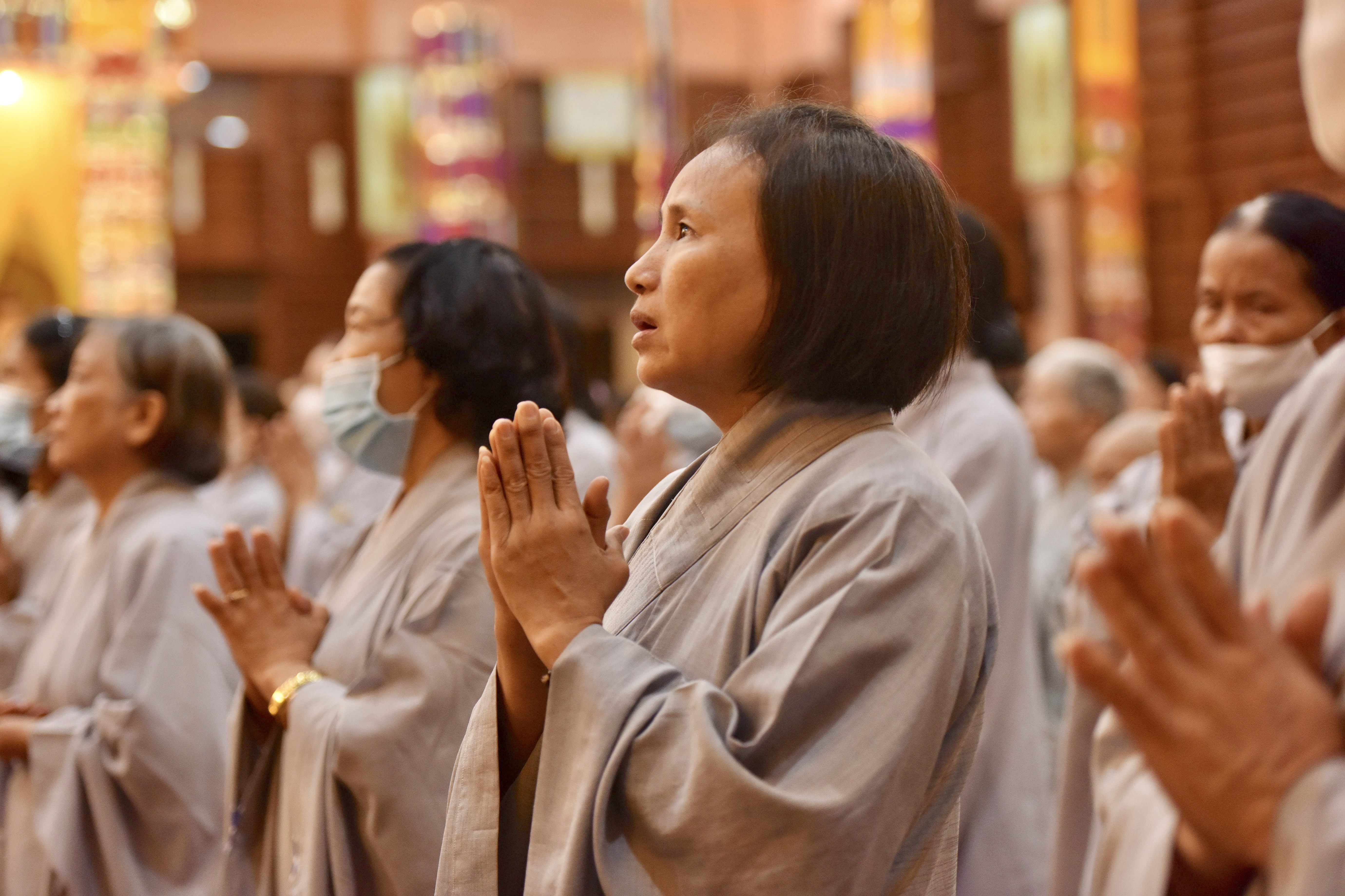Để có được 10 niệm nhất tâm và sự cứu độ của Đức Phật, hàng trăm Phật tử tham gia khoá lễ tu tập tại chùa Đại Tùng Lâm Hoa Sen luôn nhất tâm, chí thành chí thiết trì niệm "Nam Mô A Di Đà Phật" và quán tướng hảo của Phật, nghĩ đến công đức của Phật, ngộ được bản tánh của Phật.
