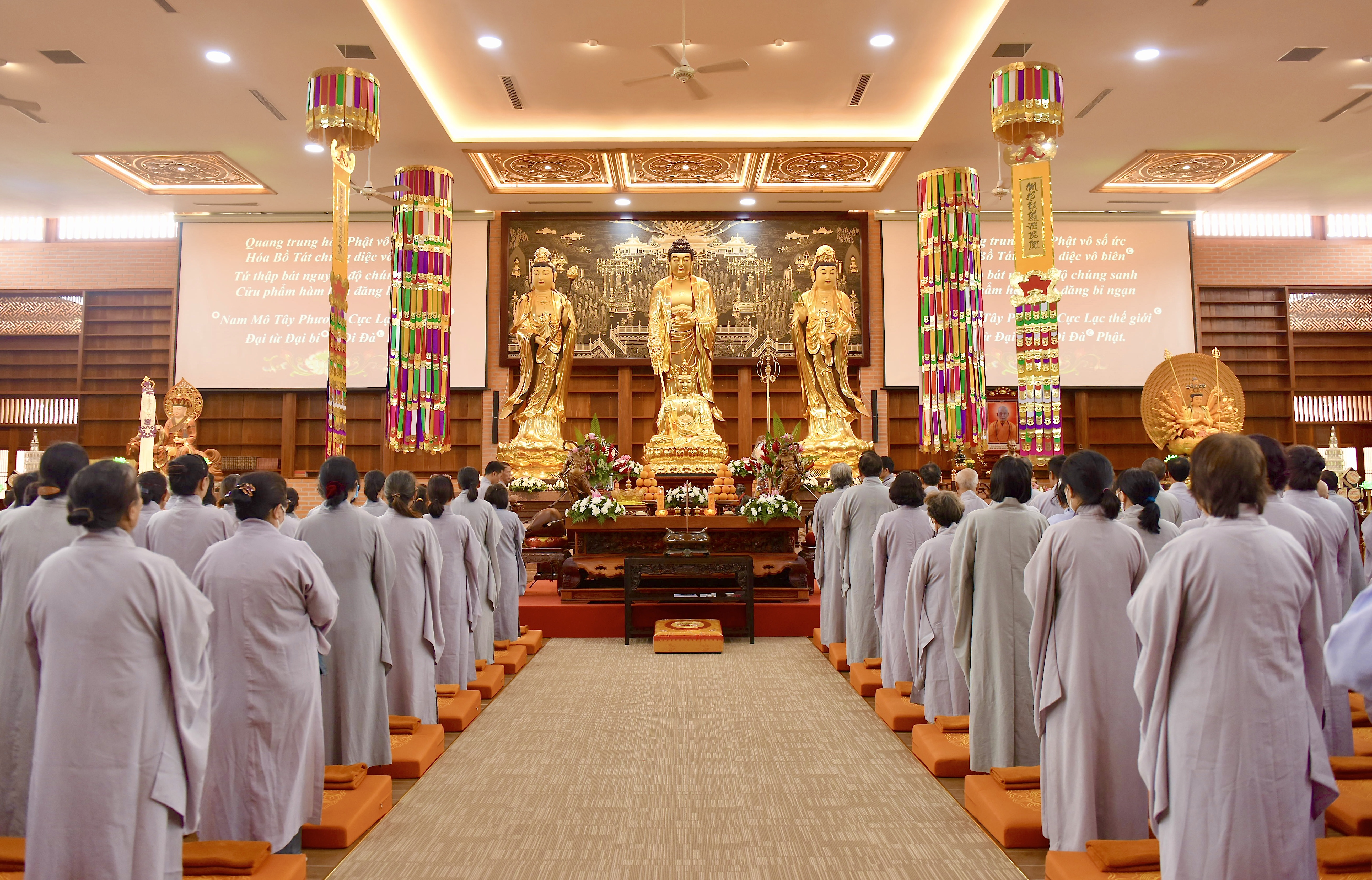 Tham gia khóa lễ cộng tu Tịnh độ tại Chùa Đại Tùng Lâm Hoa Sen nhân tưởng niệm Đức Quán Thế Âm Bồ Tát xuất gia, toàn thể đạo tràng không chỉ nhất tâm trì niệm hồng danh của Ngài mà còn được sống trong trái tim từ bi, yêu thương, sống trong hương lành của Mẹ hiền Quán Thế Âm.