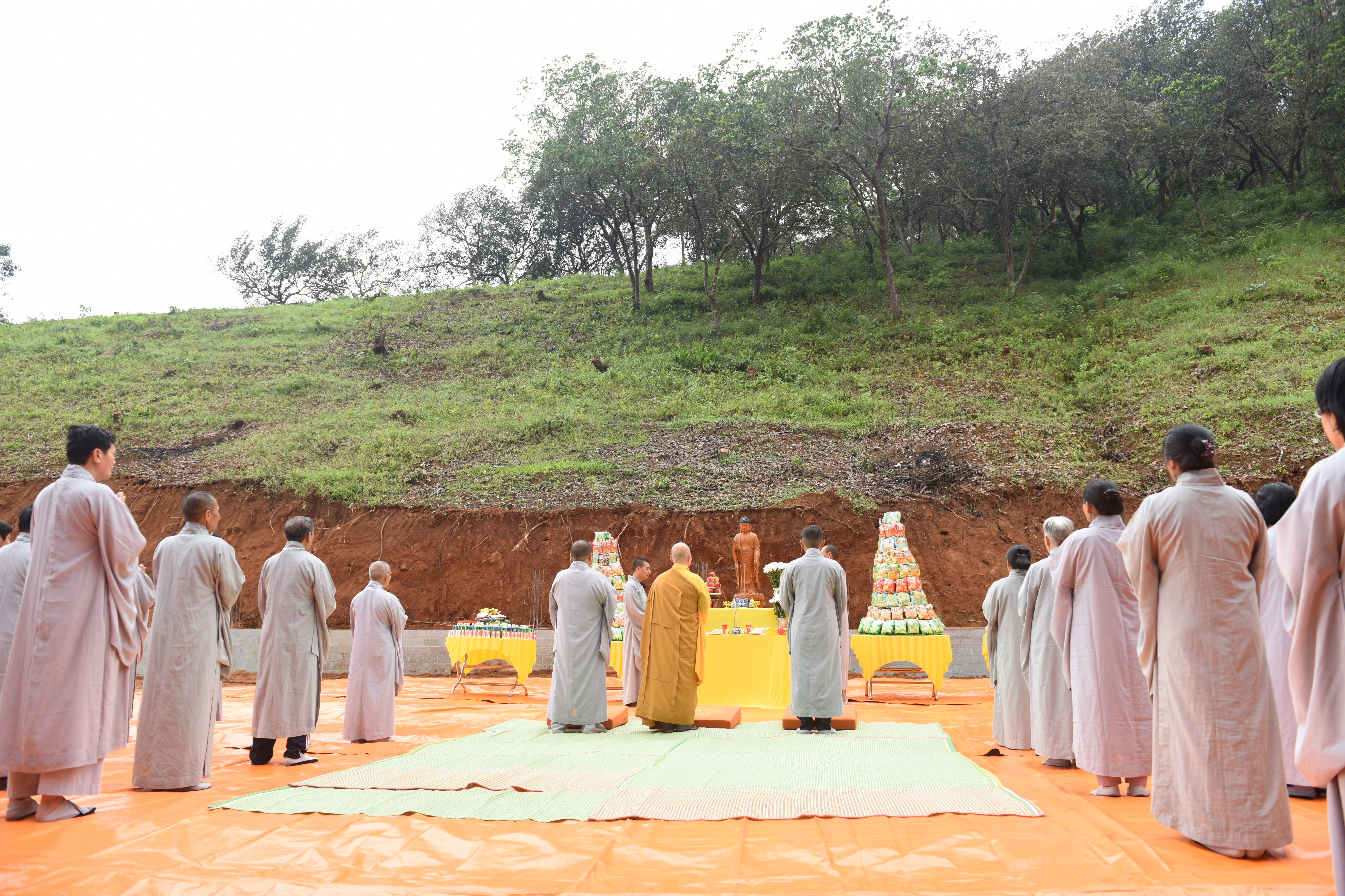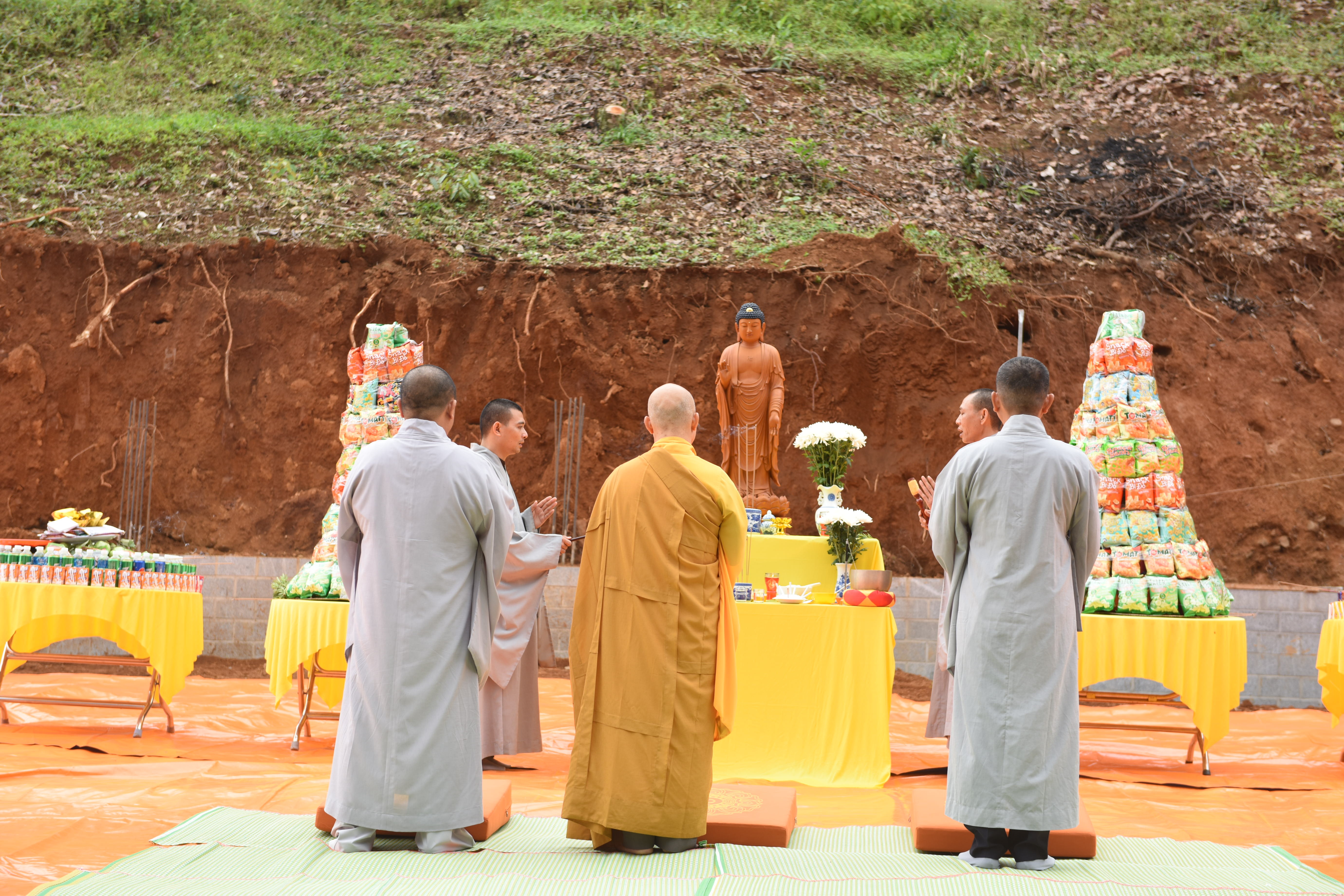 The Venerable Monk solemnly celebrates the groundbreaking ceremony for the construction of the 48-7 Buddha Hall