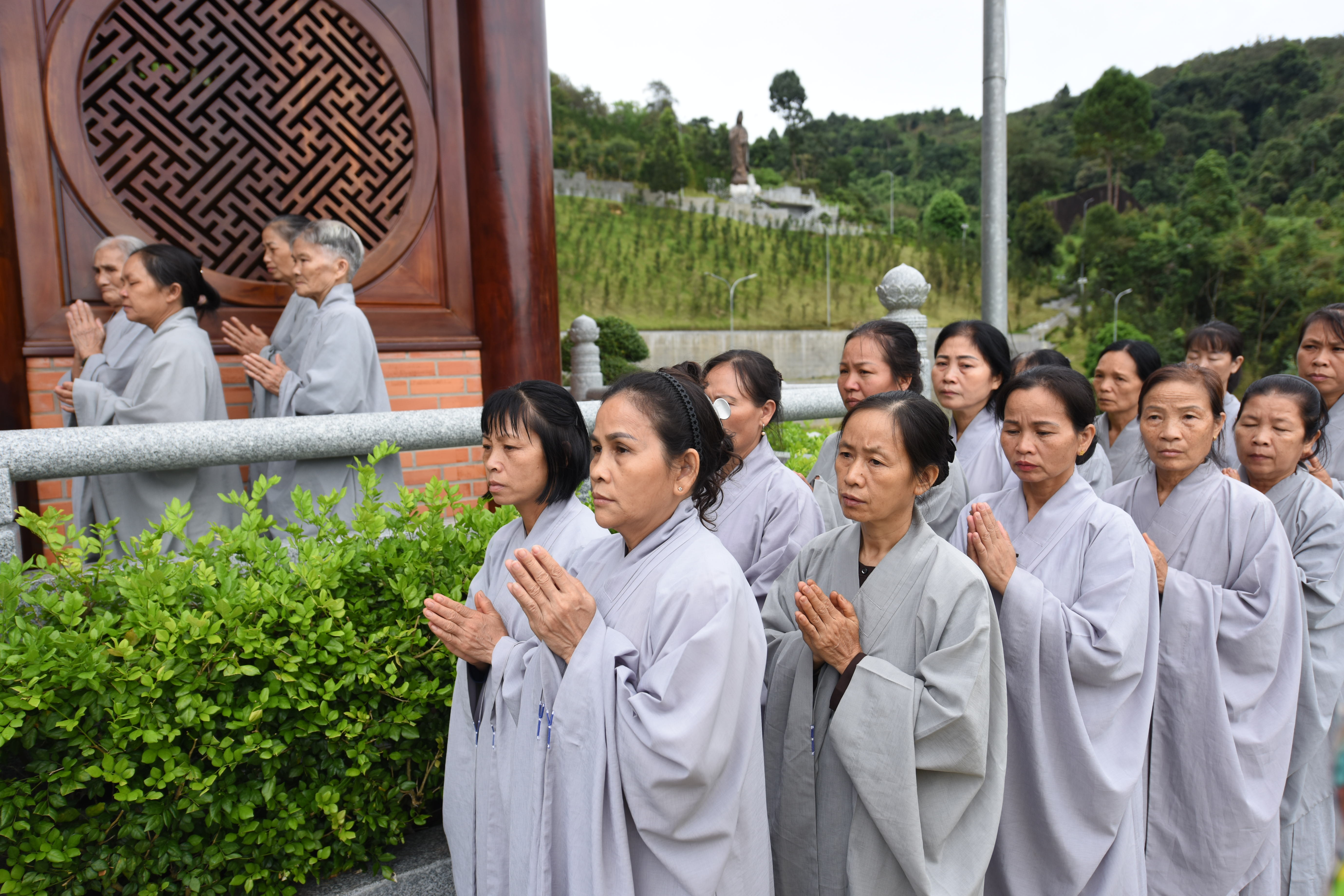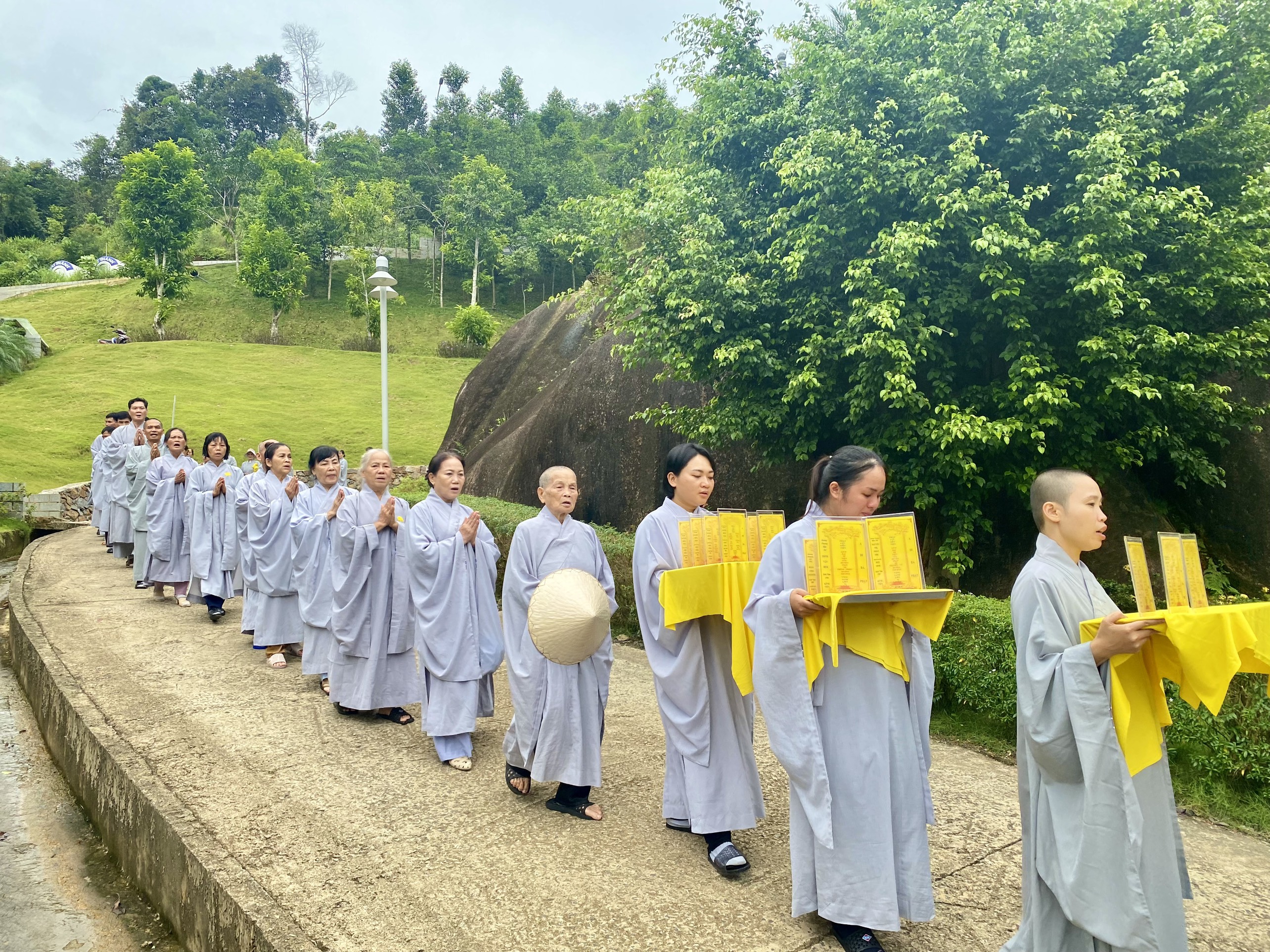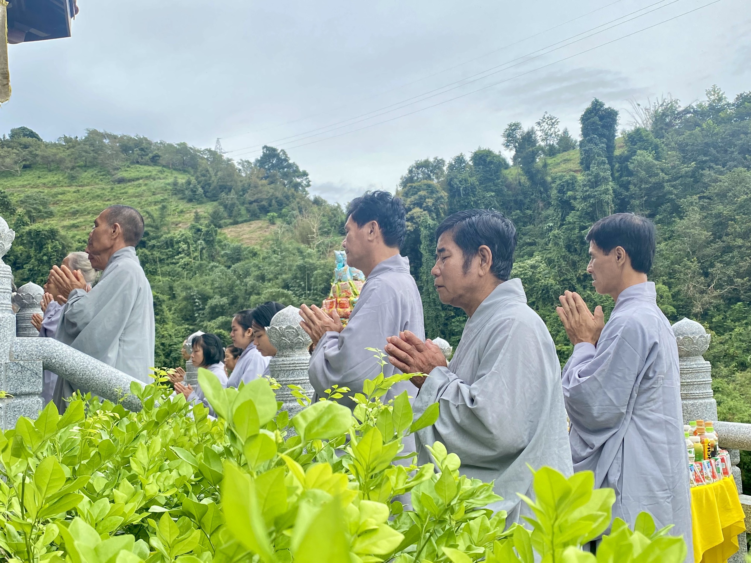 On the same morning, the ceremony of offering incense and praying for the spirits of deceased relatives who are usually present at Dai Tung Lam Hoa Sen was solemnly held at Ksitigarbha Bodhisattva Palace. During the ceremony, the attendees expressed their gratitude and respect, sincerely relying on the power of Ksitigarbha Bodhisattva, and prayed for his compassionate heart to use his divine power to relieve the suffering of the deceased spirits, ancestors, relatives and past loved ones, so that they may return to the Buddha's refuge.