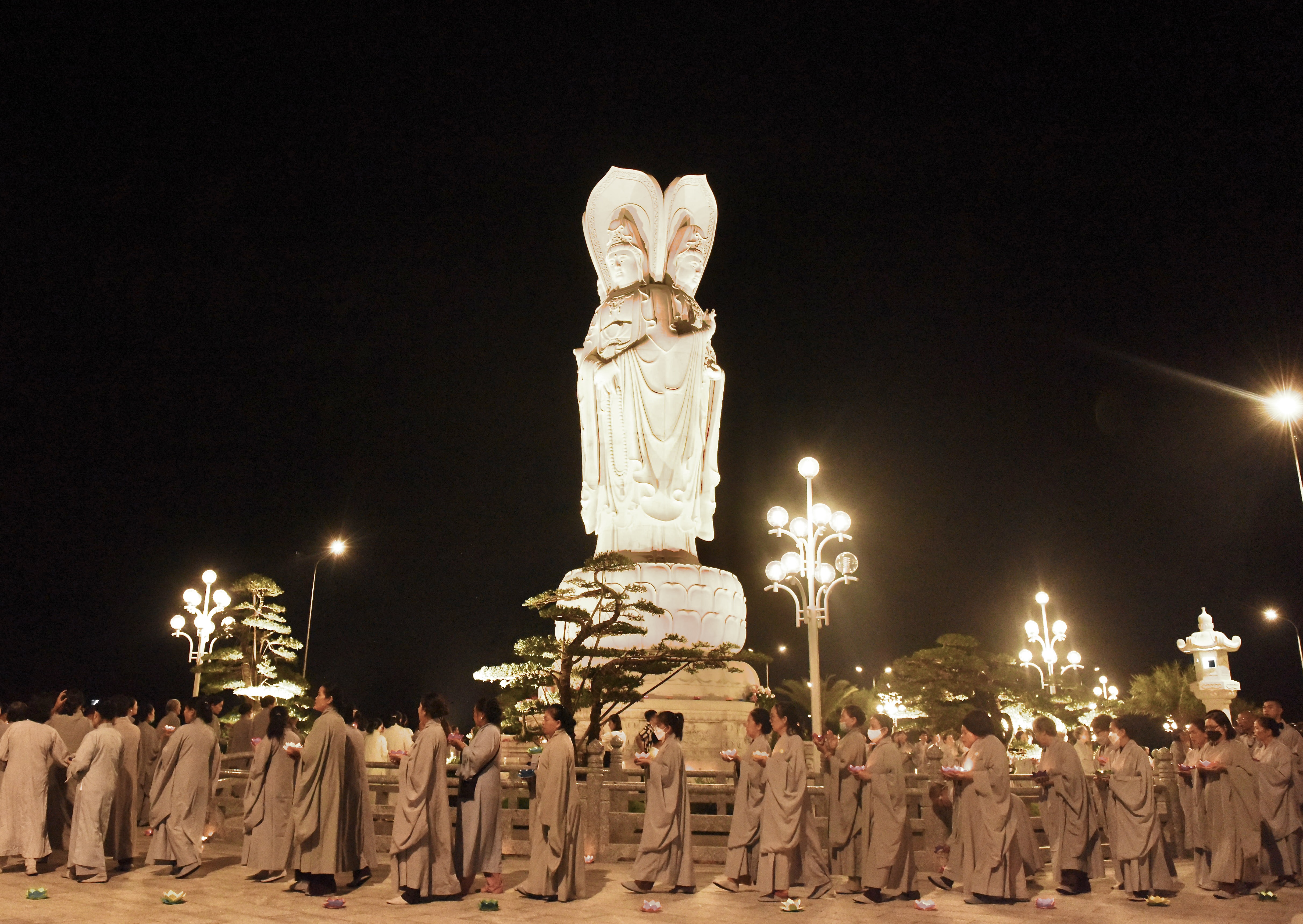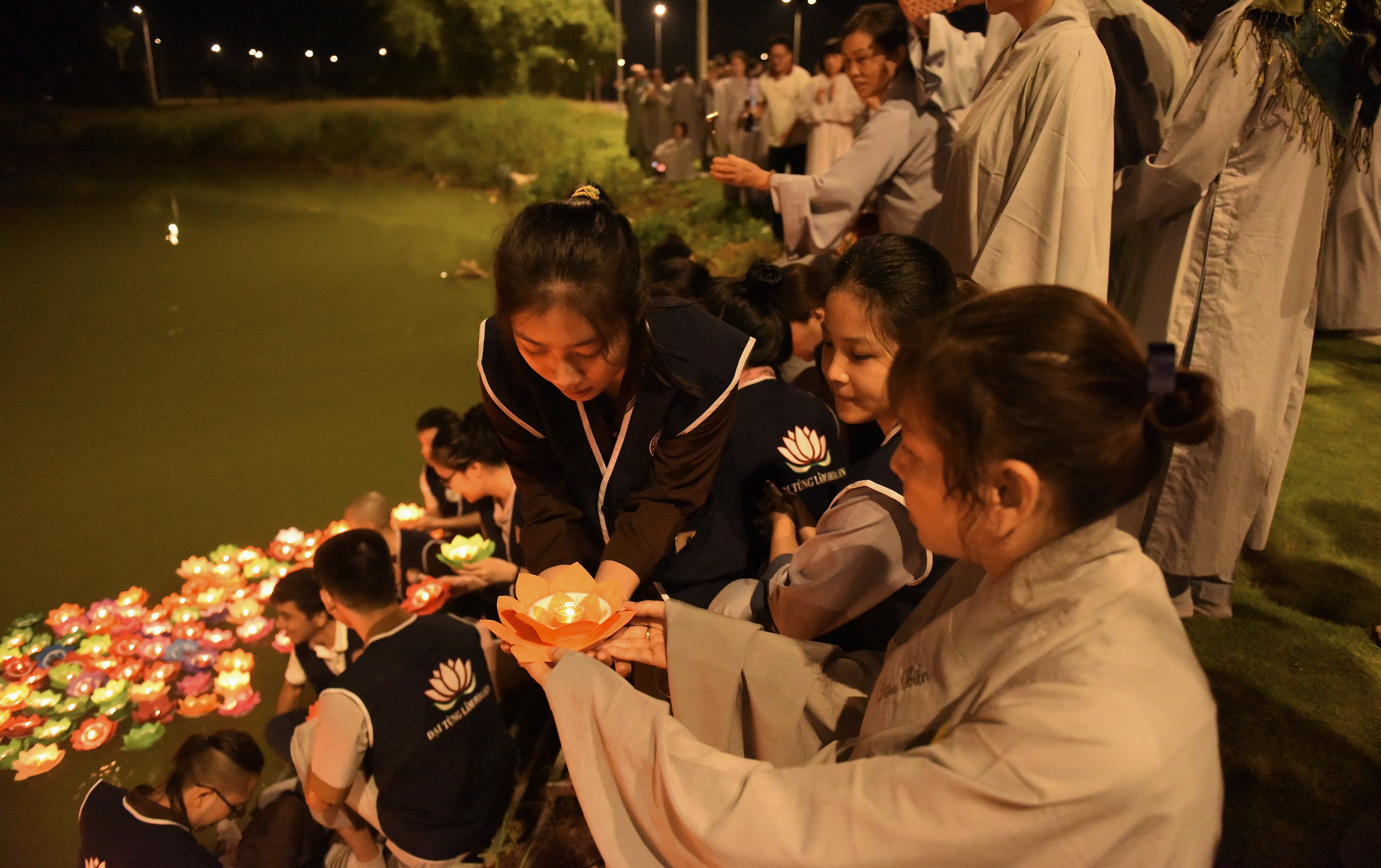 Therefore, each lotus lantern was sequentially lit and passed on to hundreds of Buddhist followers and fellow practitioners, not only symbolizing the continuity of tradition but also illuminating the heart with compassion, joyous giving, patience, and the aspiration to practice the 12 great vows of Bodhisattva Avalokitesvara - the compassionate mother of all living beings.