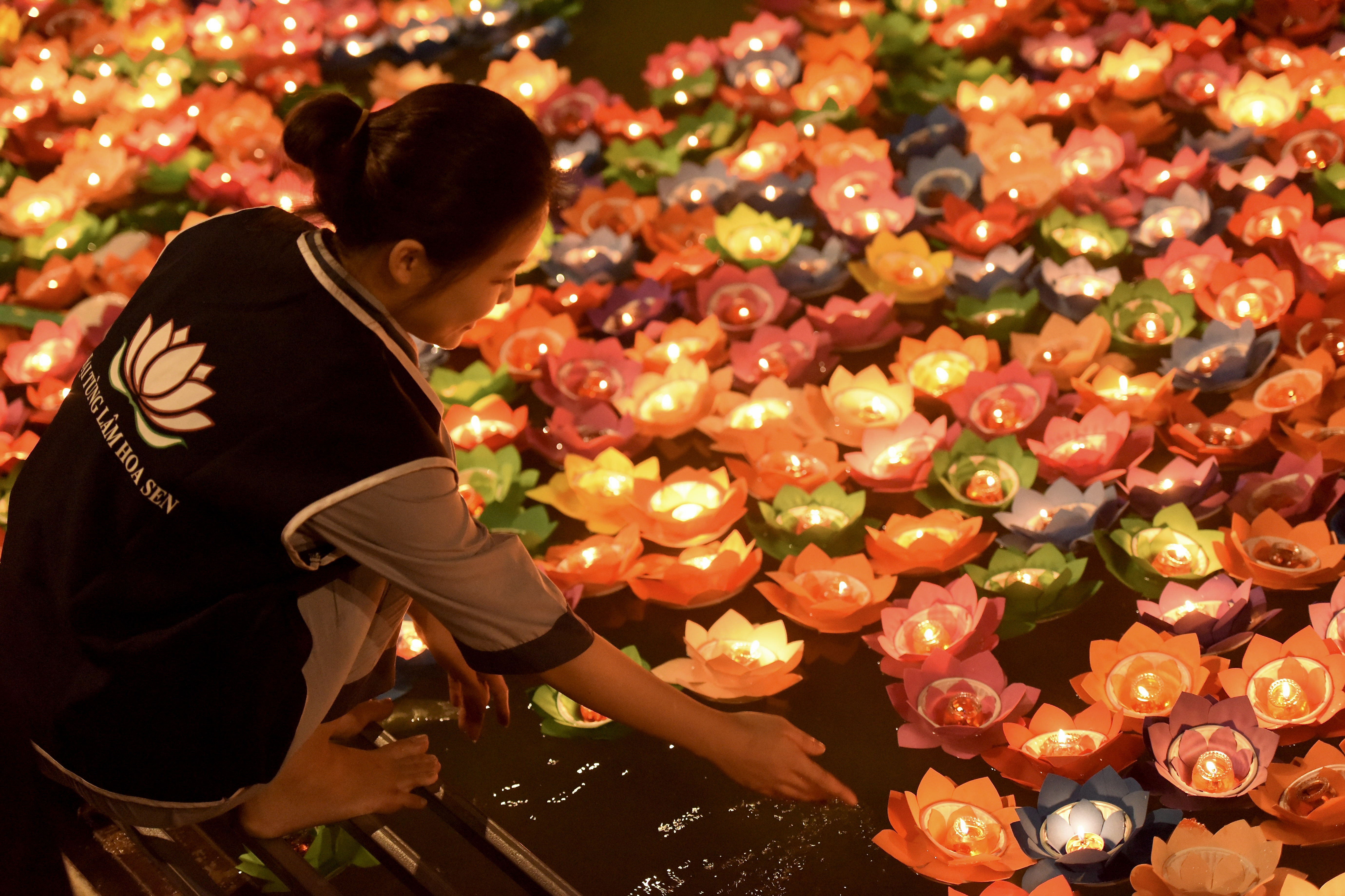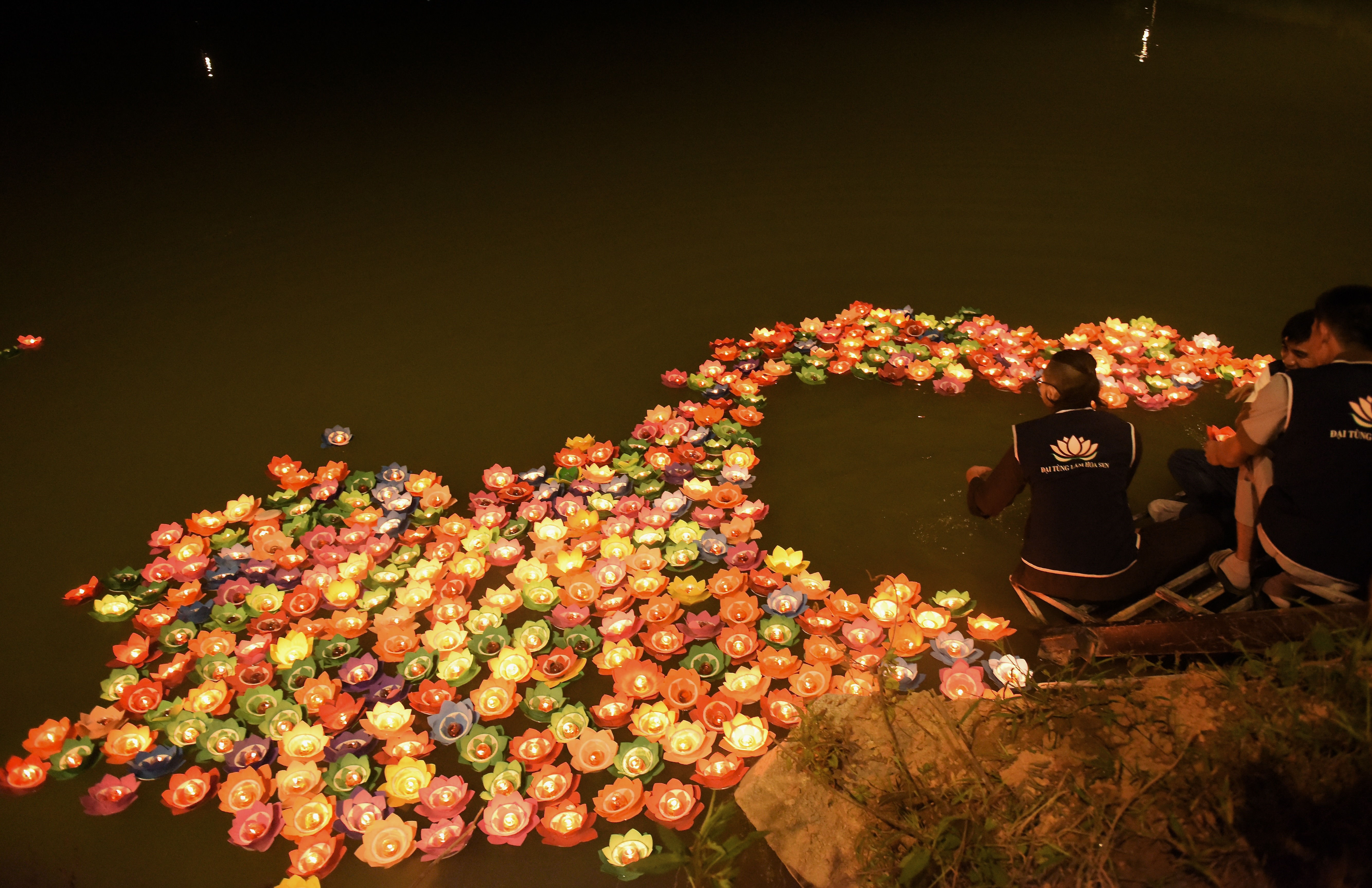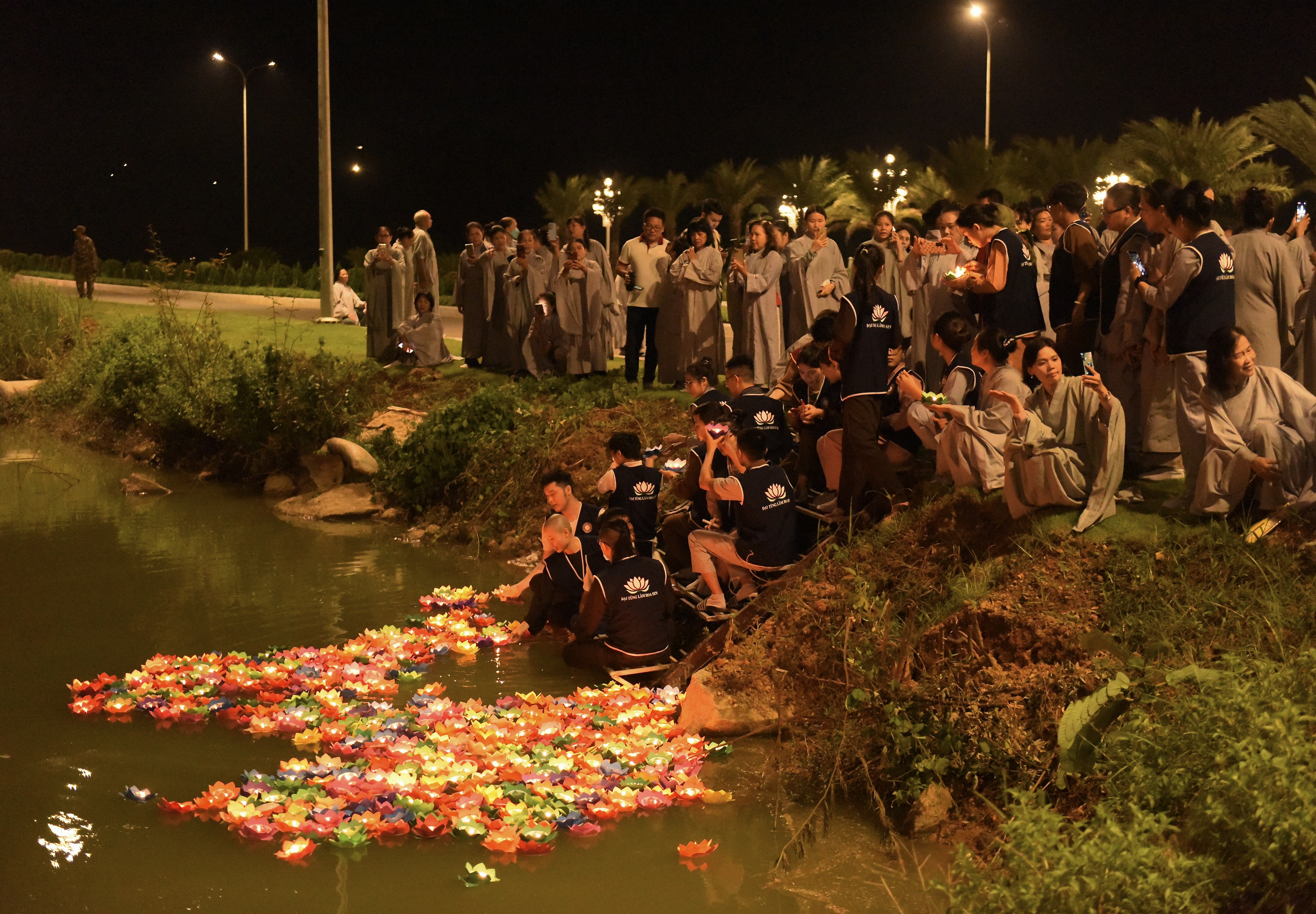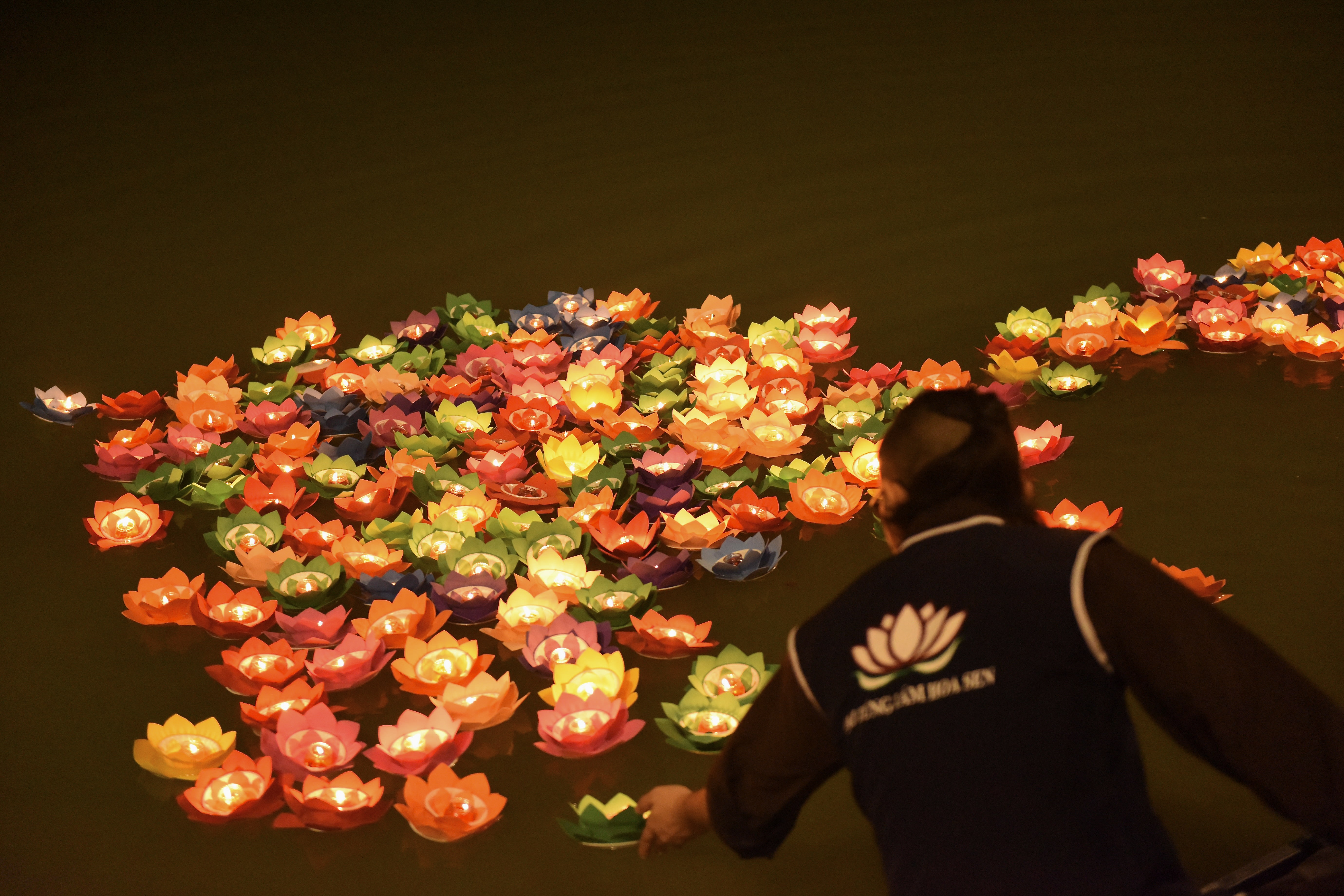Hundreds of floating lanterns were released into the river by Buddhist followers and members of the Dai Tung Lam Hoa Sen. The sacred and colorful lights served as a prayer for blessings, as well as a wish for the continued existence of Buddhism, world peace, and the well-being of all beings on the path of practice and cultivation, following the compassionate teachings of Bodhisattva Avalokitesvara, for the personal and familial peace and liberation of all beings from samsara.