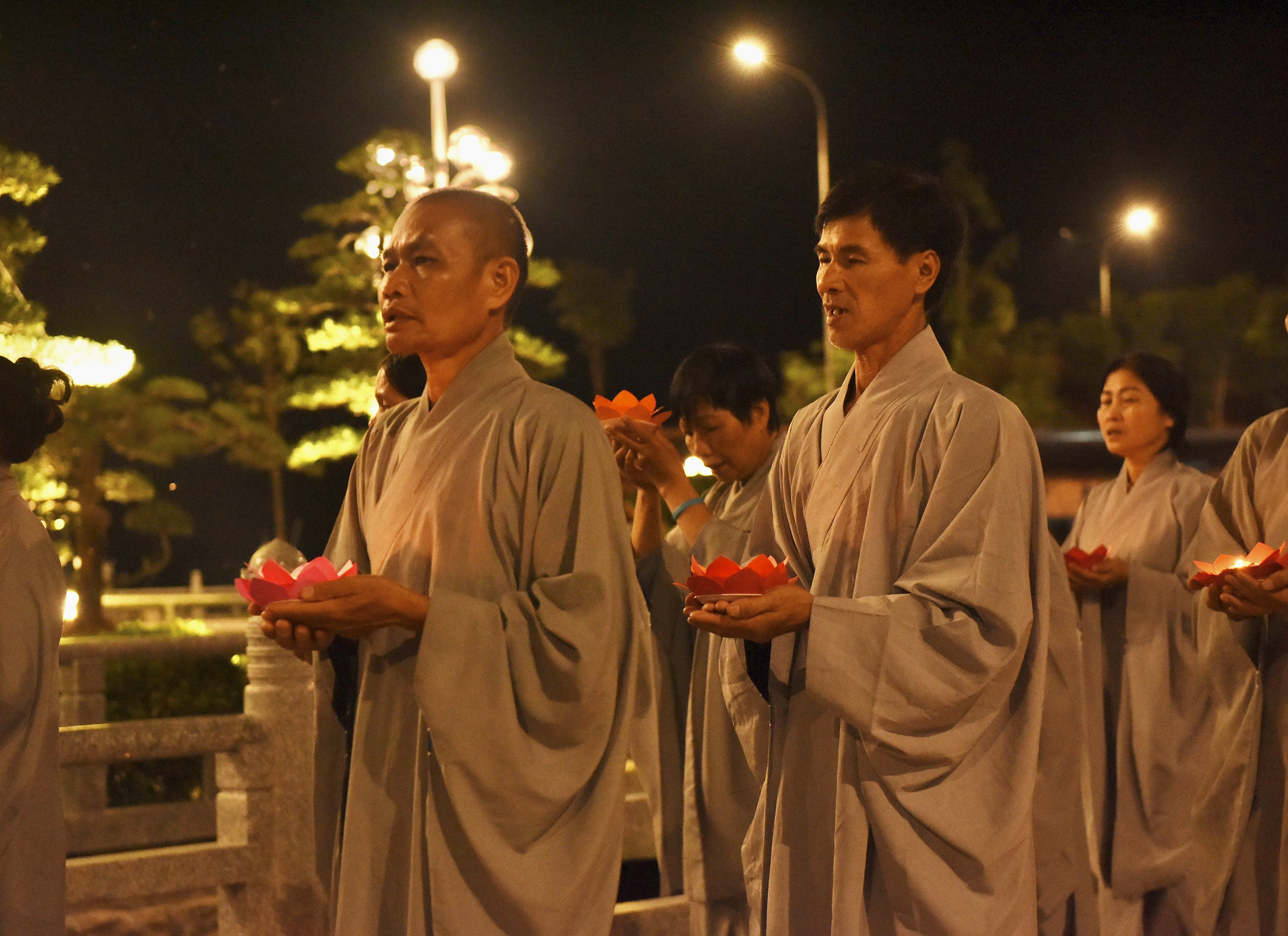 On their hands were brightly lit lotus lanterns as the entire procession walked mindfully while reciting the sacred name of Bodhisattva Avalokitesvara
