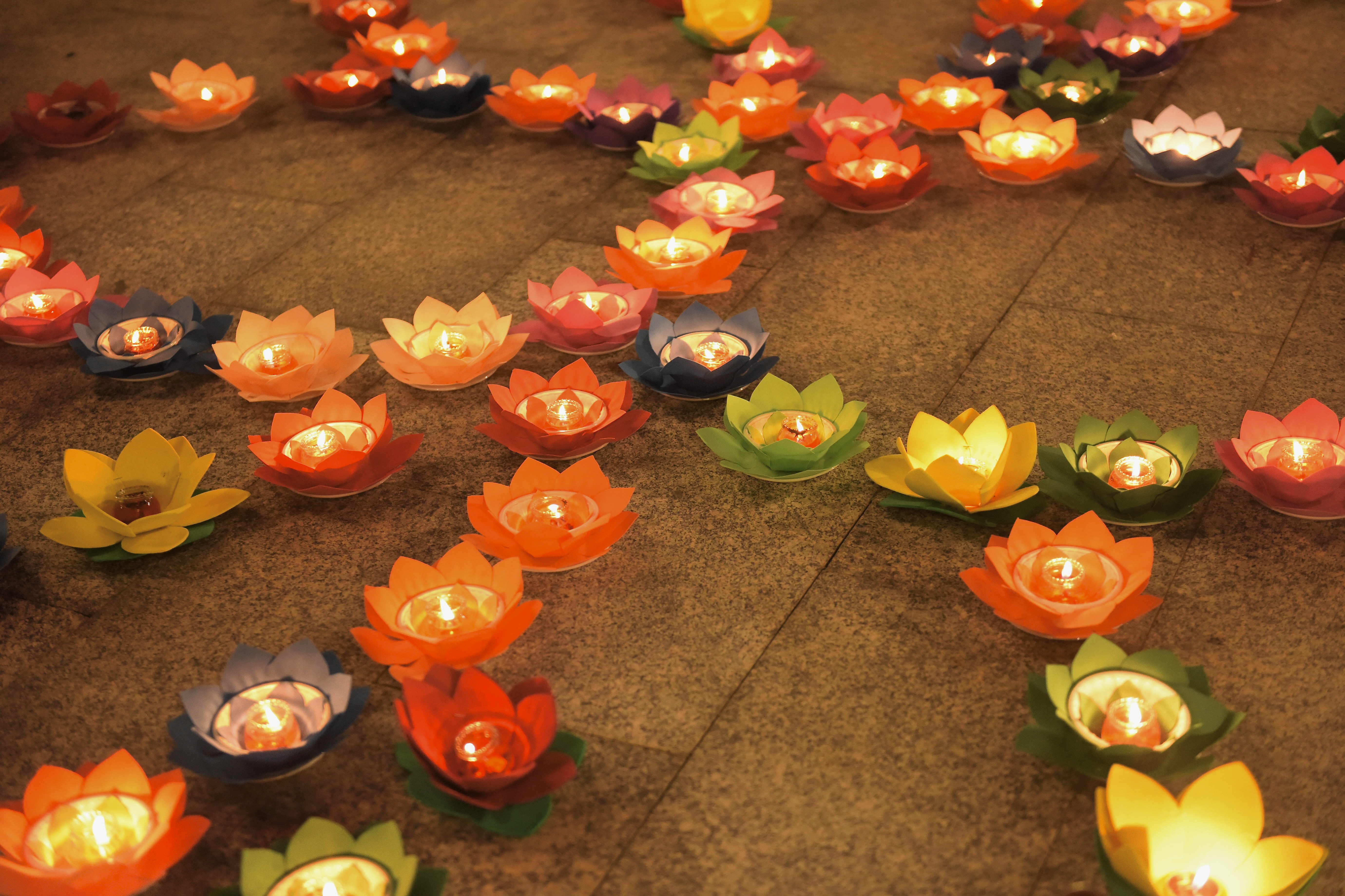 The lotus lanterns are designed in the shape of lotus flowers - symbolizing the light of Buddha's teachings shining upon us.