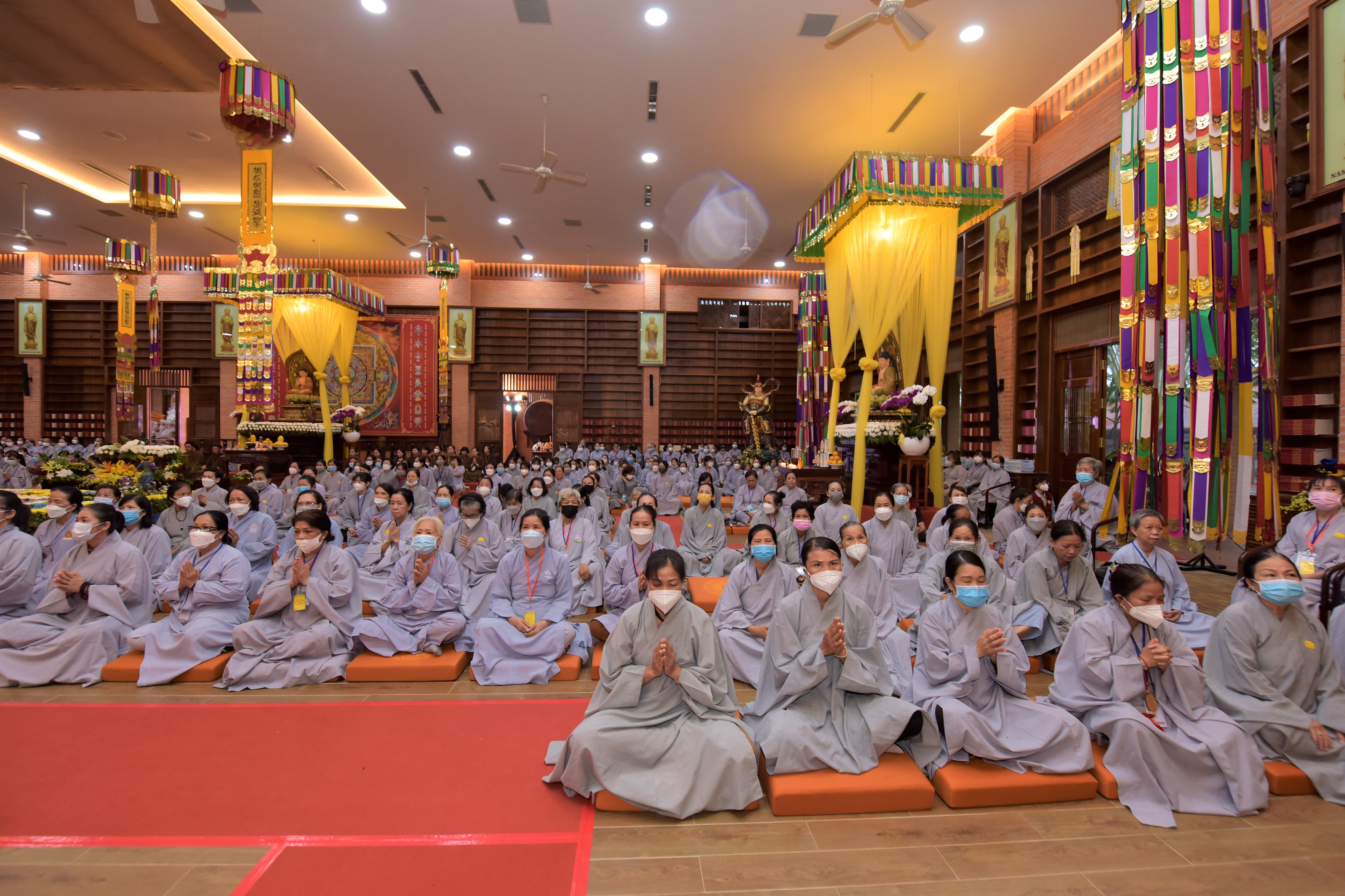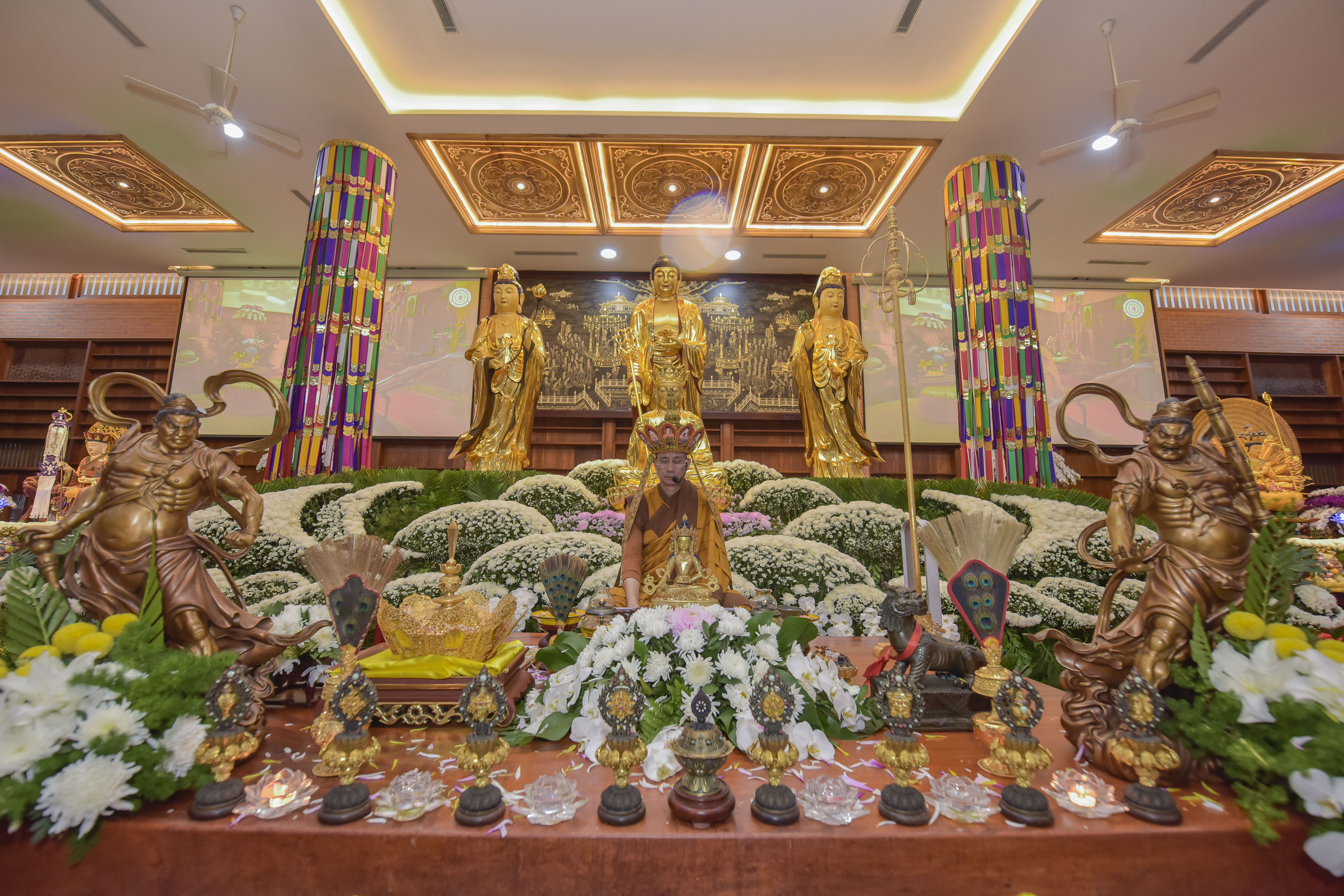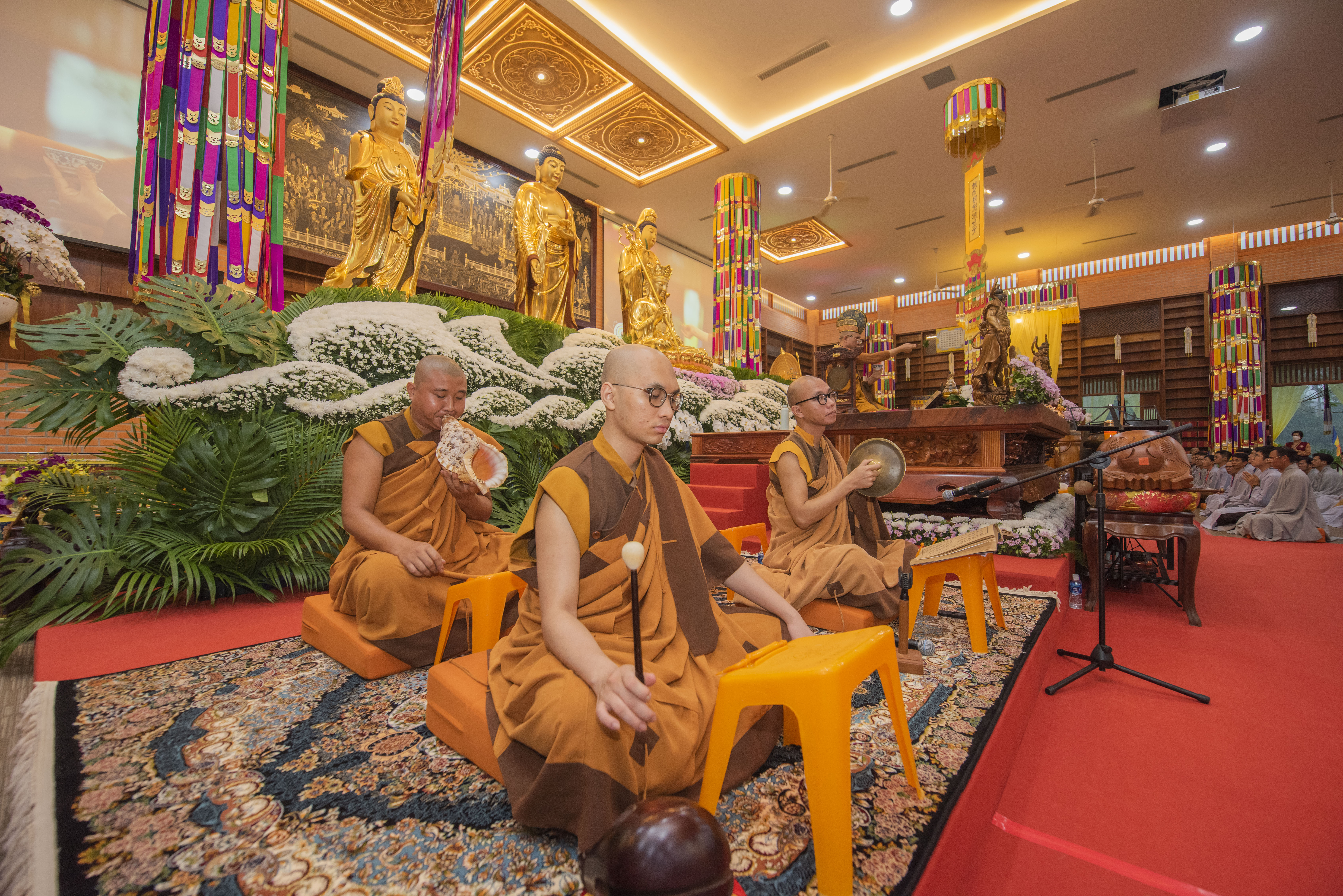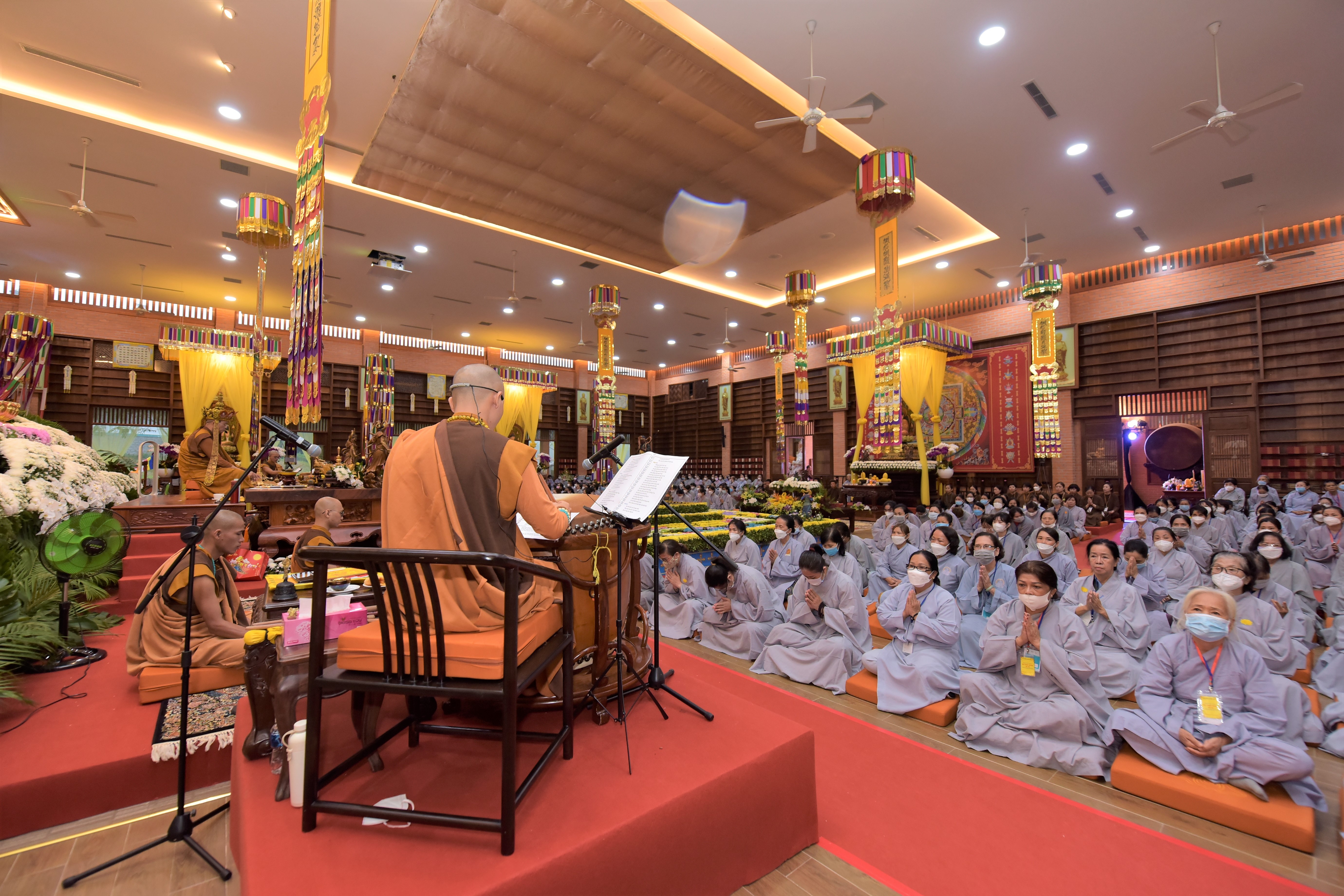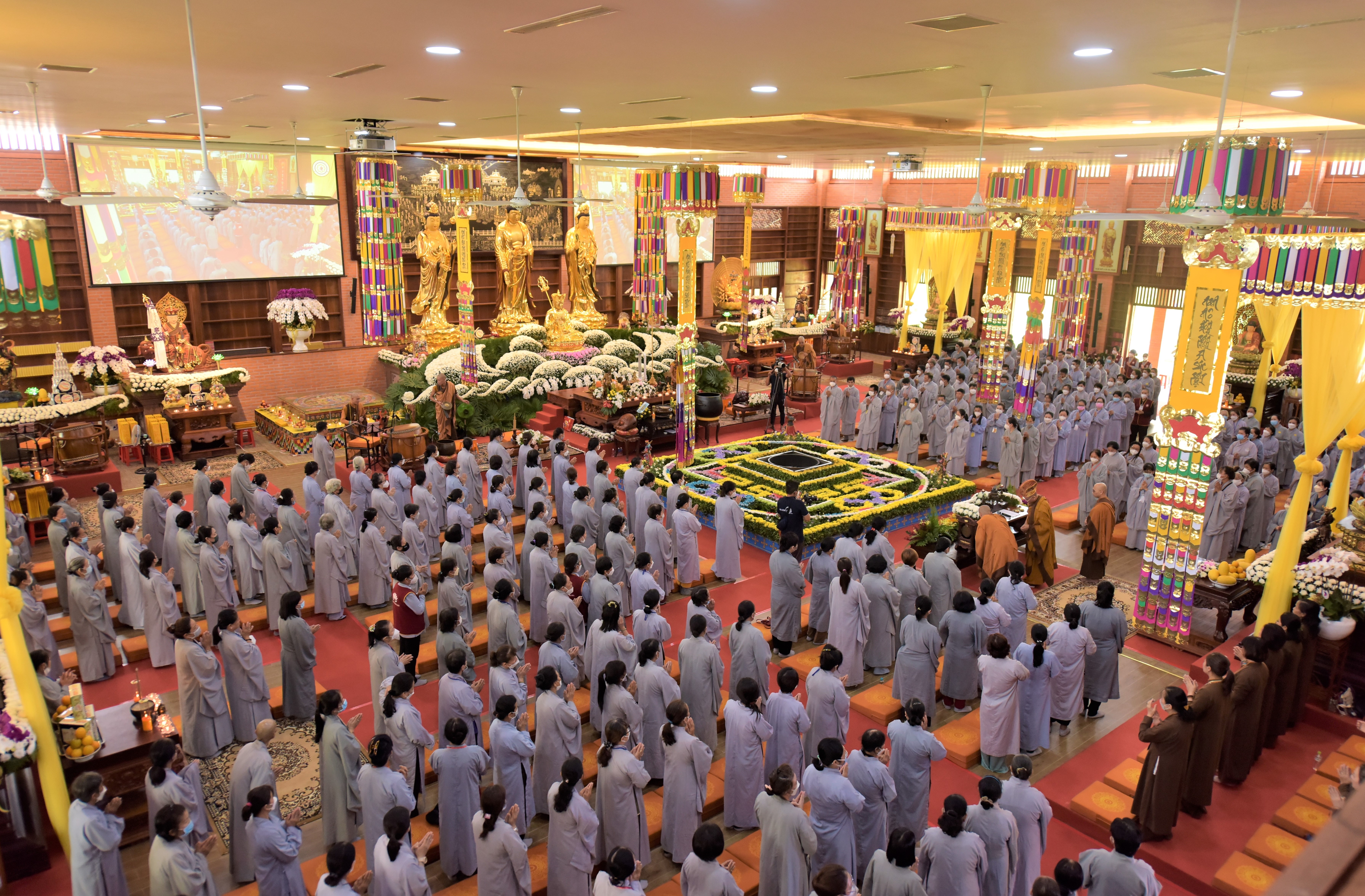 Toàn thể đàn tràng trang nghiêm cử hành Pháp hội Cầu siêu đồng bào tử nạn trong đại dịch Covid-19 tại Chùa Đại Tùng Lâm Hoa Sen