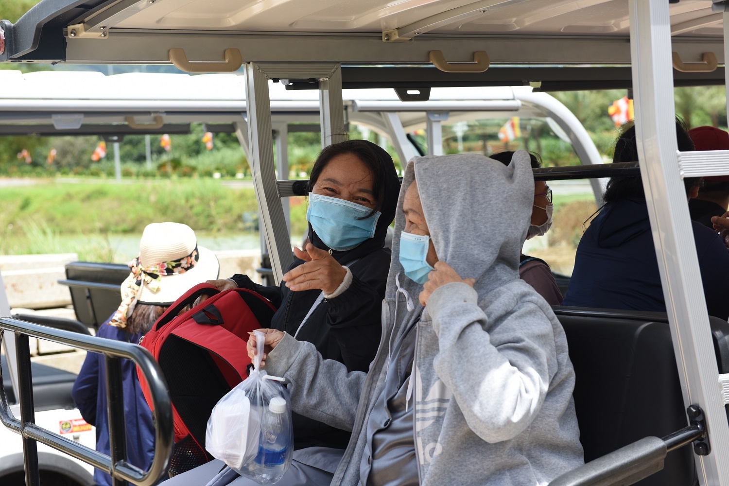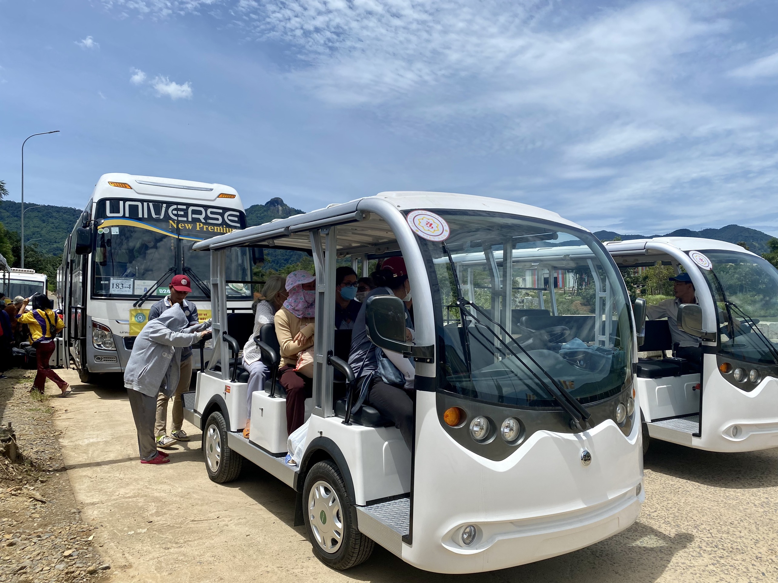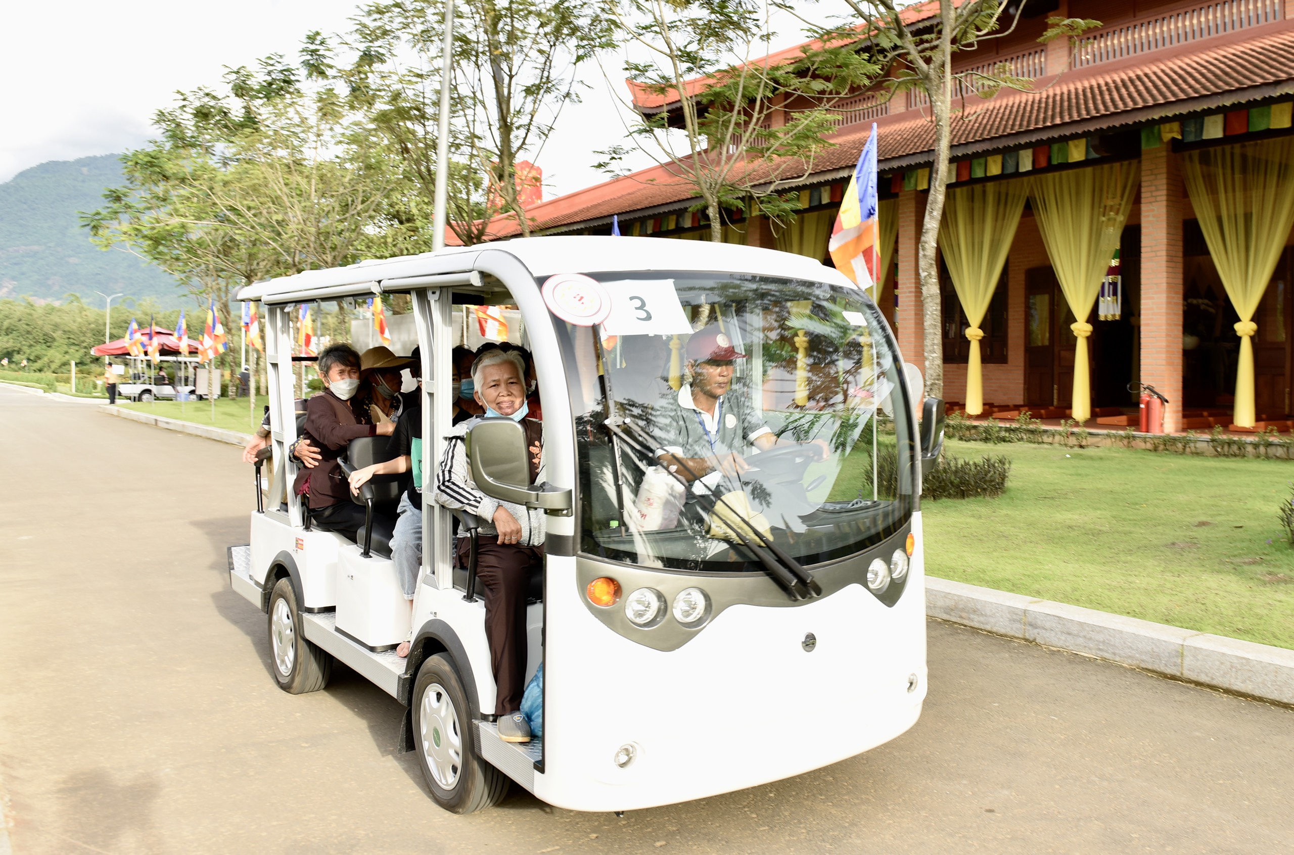 Ban Tổ chức đưa Phật tử, nhân dân di chuyển vào bên trong nội khu bằng xe trung chuyển