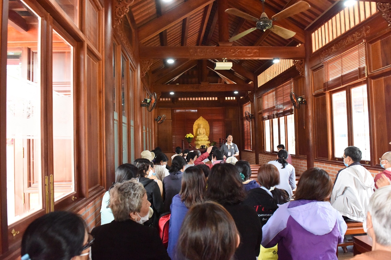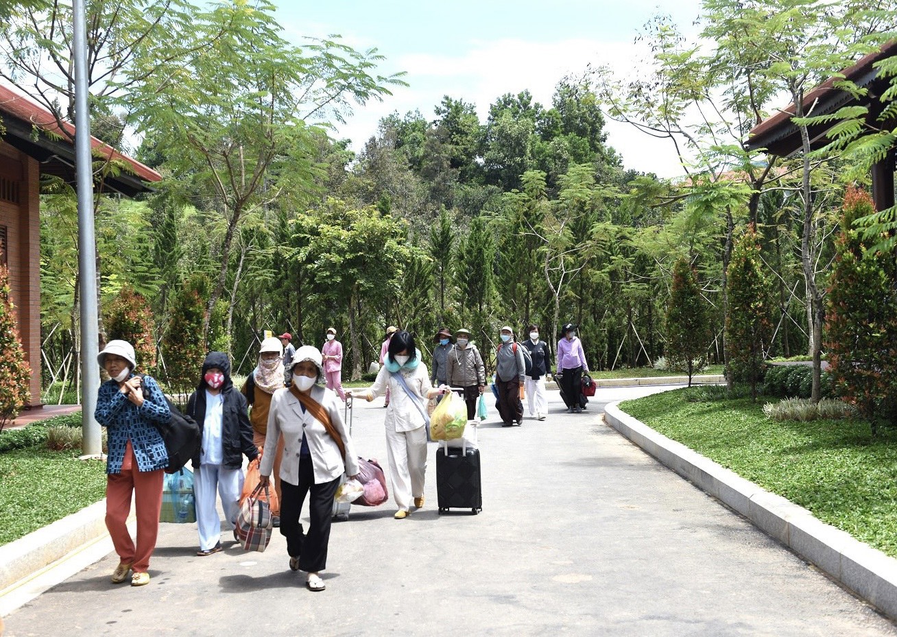 Ban Tổ chức hướng dẫn Phật tử, nhân dân cùng di chuyển về Nhà chúng để bố trí, sắp xếp khu vực nghỉ ngơi
