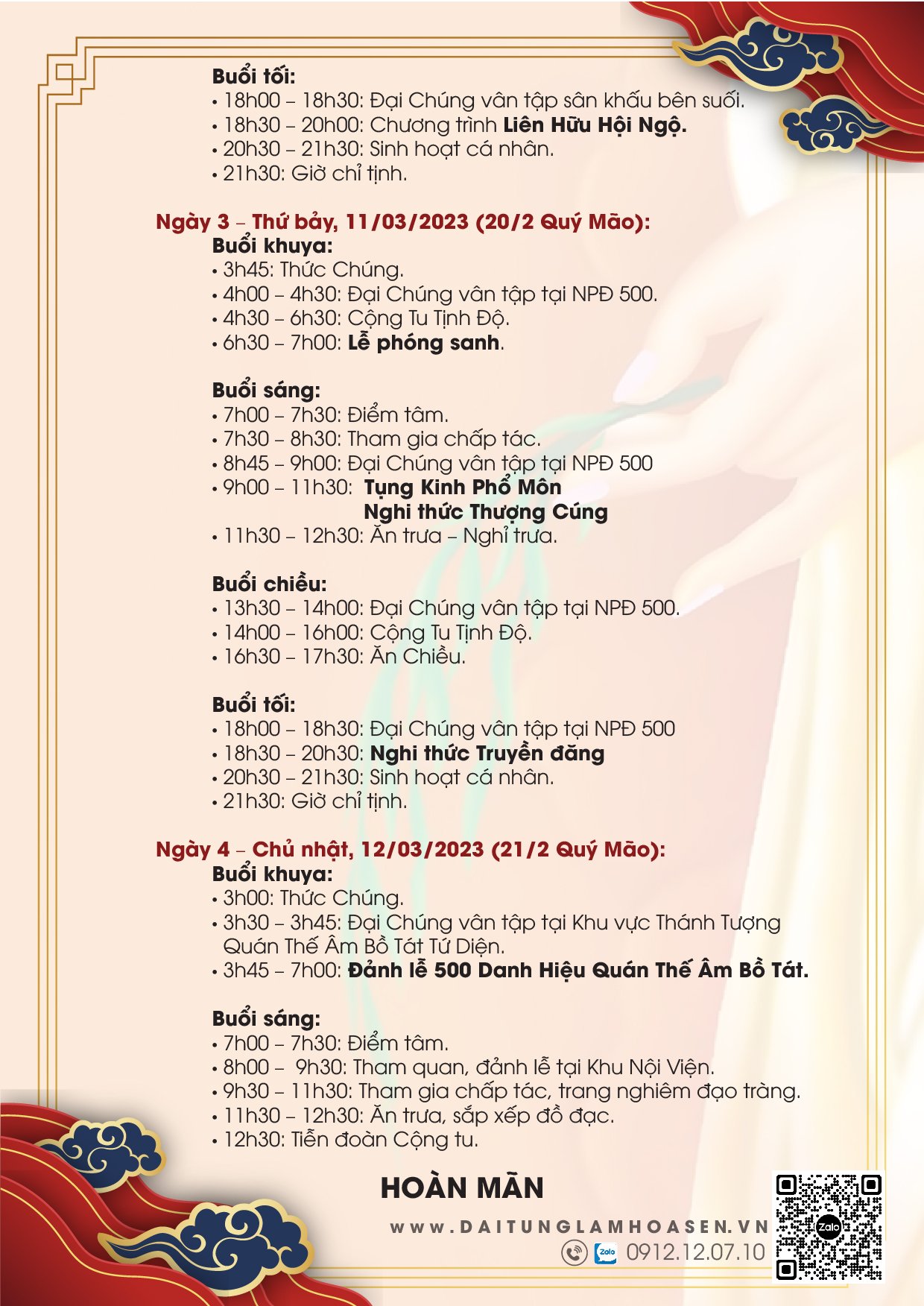1. Thời gian tổ chức: 09/03 – 12/03/2023 (Nhằm ngày 18 – 21/2/Quý Mão)