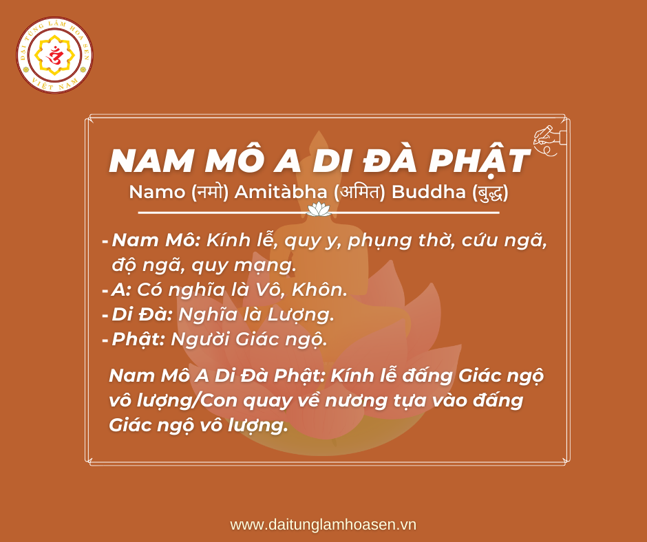 Niệm danh hiệu Di Đà là niệm vô lượng hằng sa công đức của lục độ vạn hạnh. Vì sao? Bởi vì Di Đà Như Lai đã từ vô lượng hằng hà sa số kiếp tu hành lục độ vạn hạnh, chứa đầy công đức vô lậu như hư không, trang nghiêm Phật quốc Tịnh Độ.