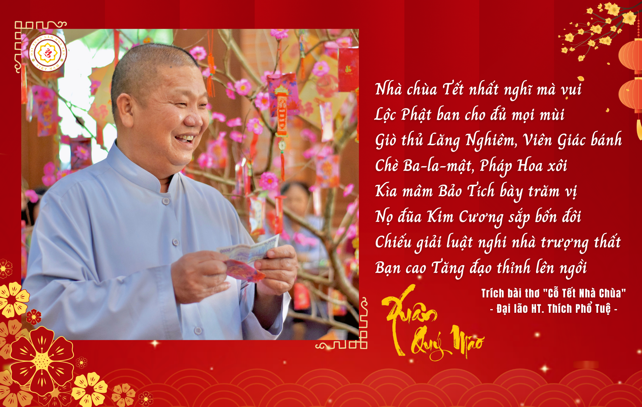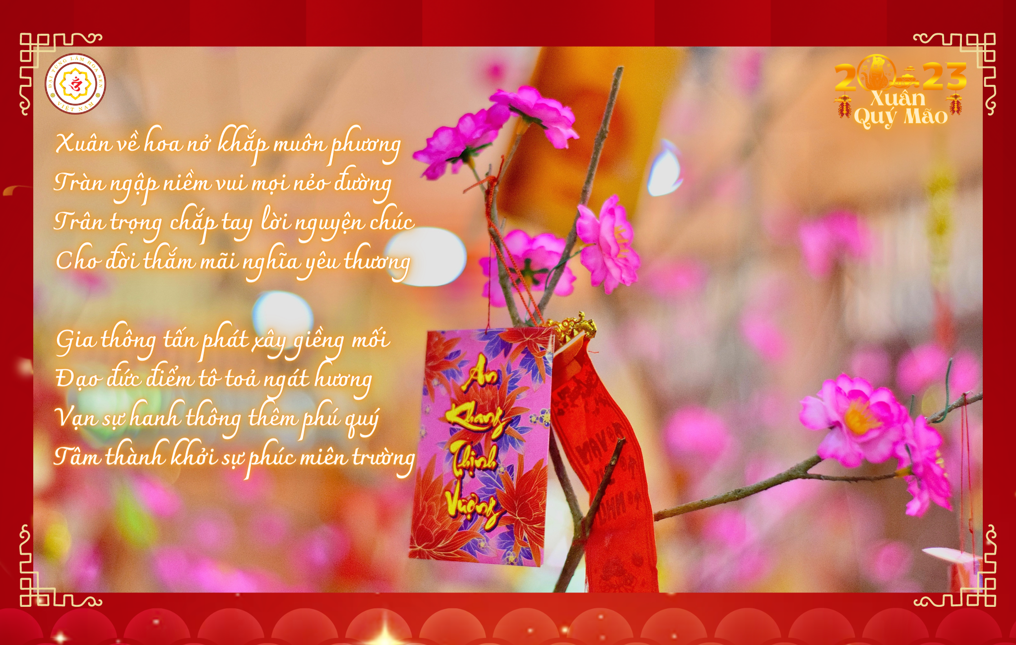 Kính chúc quý Phật tử đón xuân an lạc trong ánh sáng từ bi và trí tuệ của chư Phật, ngưỡng mong ánh sáng và nụ cười đầy Từ Bi, Hoan Hỷ, Vị Tha, Phúc Lạc và Tự Tại của Đức Phật Di Lặc sẽ xua đi bóng đêm đen tối của vô minh cho khắp tất thảy muôn loài vạn vật chúng sanh để mỗi mùa xuân đều là mùa xuân miên viễn, vĩnh hằng trường tồn.