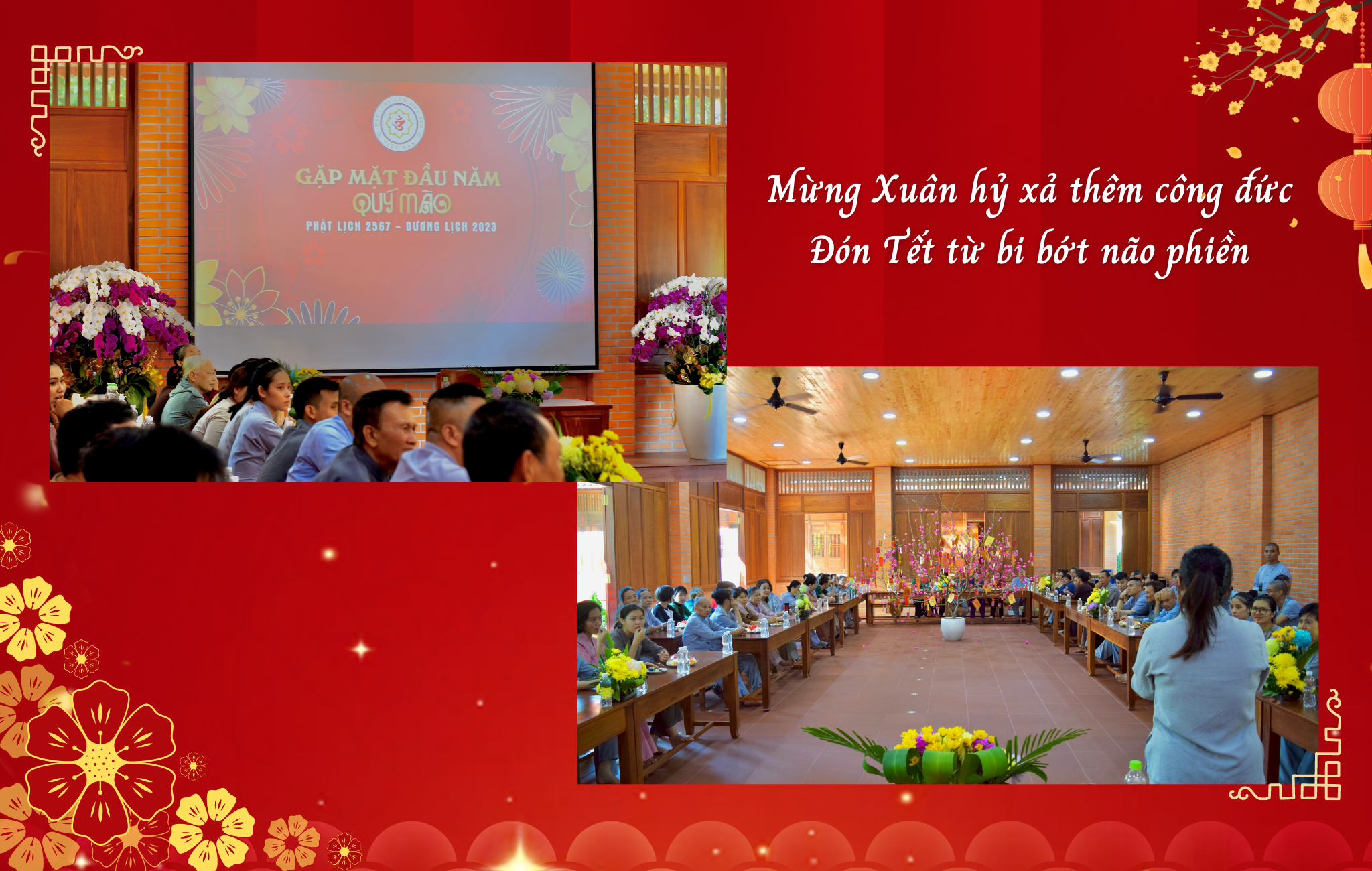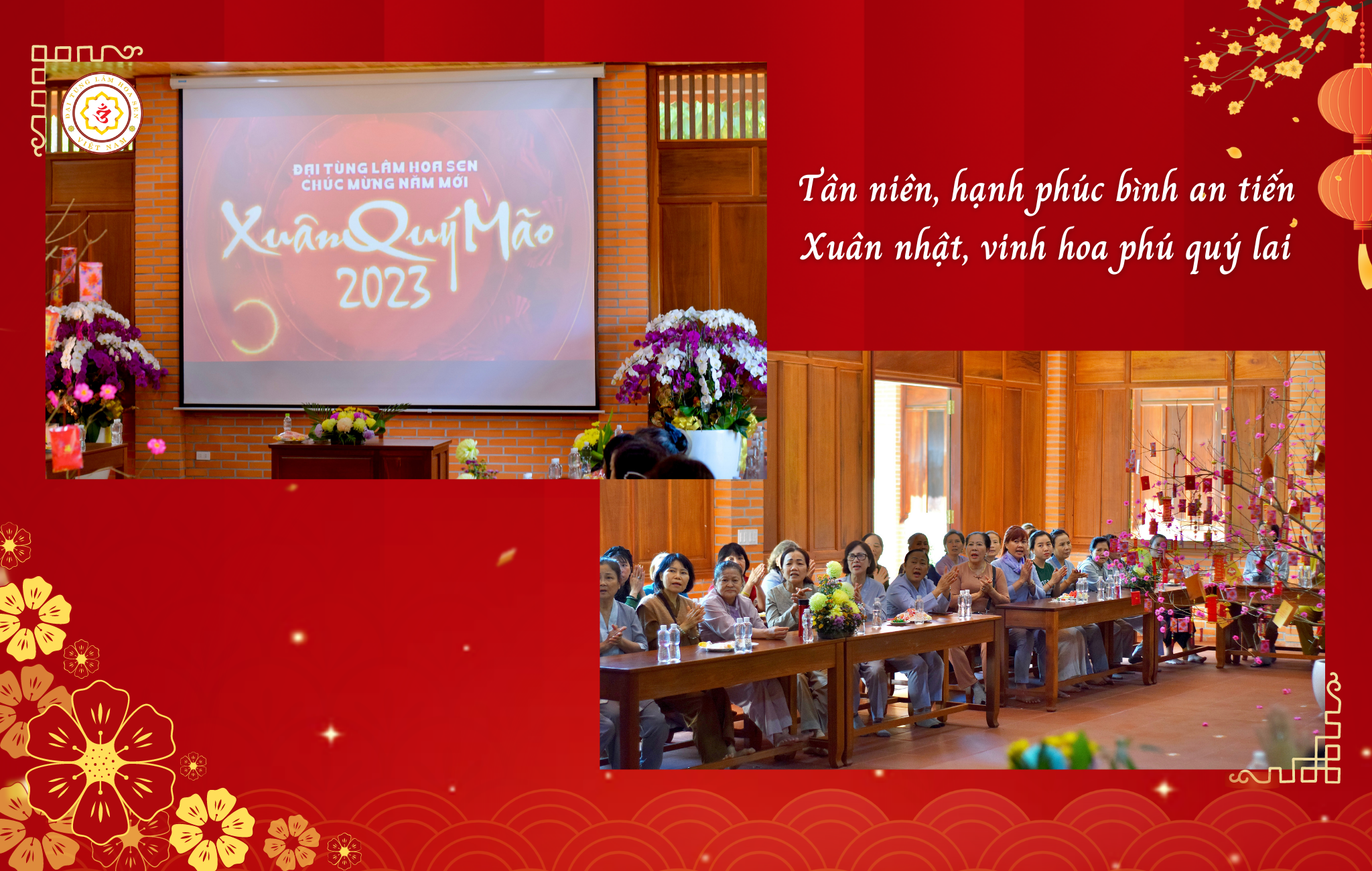 Buổi Gặp mặt đầu năm Quý Mão tại đạo tràng Đại Tùng Lâm Hoa Sen vào sáng ngày 24/1/2023 (Mùng 3 Tết) vừa qua không chỉ đơn thuần là giờ phút đạo tràng cùng nhau lan toả niềm hỷ lạc, phúc lạc khi được đón năm mới nơi chốn thiền môn; mà hơn hết, đó là thời khắc mà tất cả mọi người đều cảm thọ được niềm an lạc miên viễn, cảm nhận được sự đầm ấm, thấm tình đạo vị dưới mái già lam trang nghiêm, thanh tịnh.