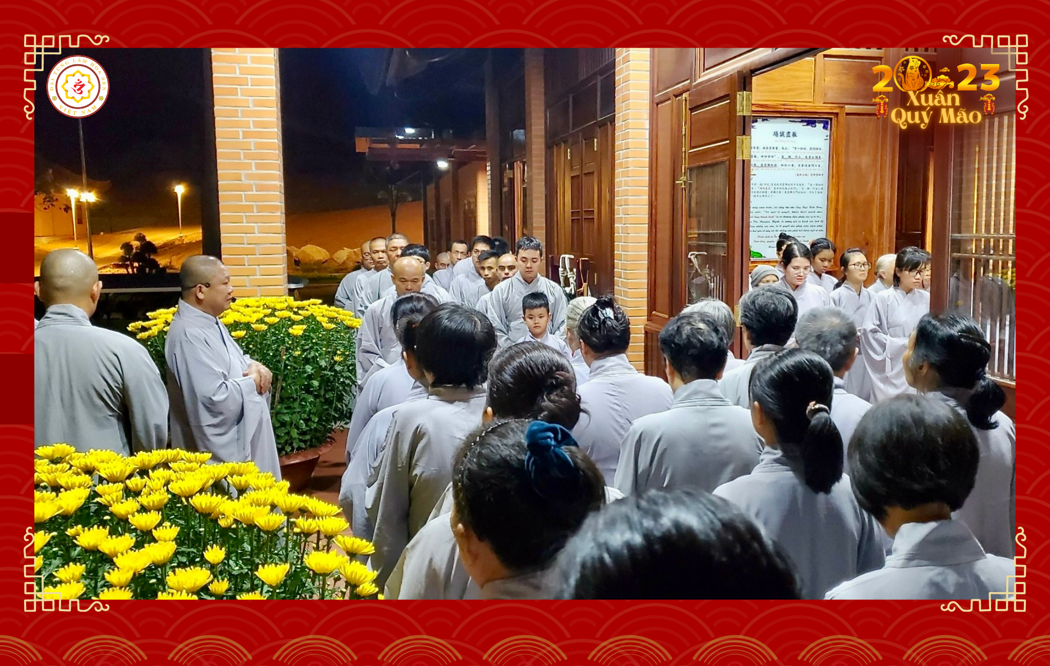 Before entering the period of intensive meditation and New Year's Eve rituals, the venerable monk Le Phuoc Vu (Dharma name: Tuong Van) - the founder and builder of Dai Tung Lam Hoa Sen, conveyed his New Year's wishes and blessings to the entire mass.