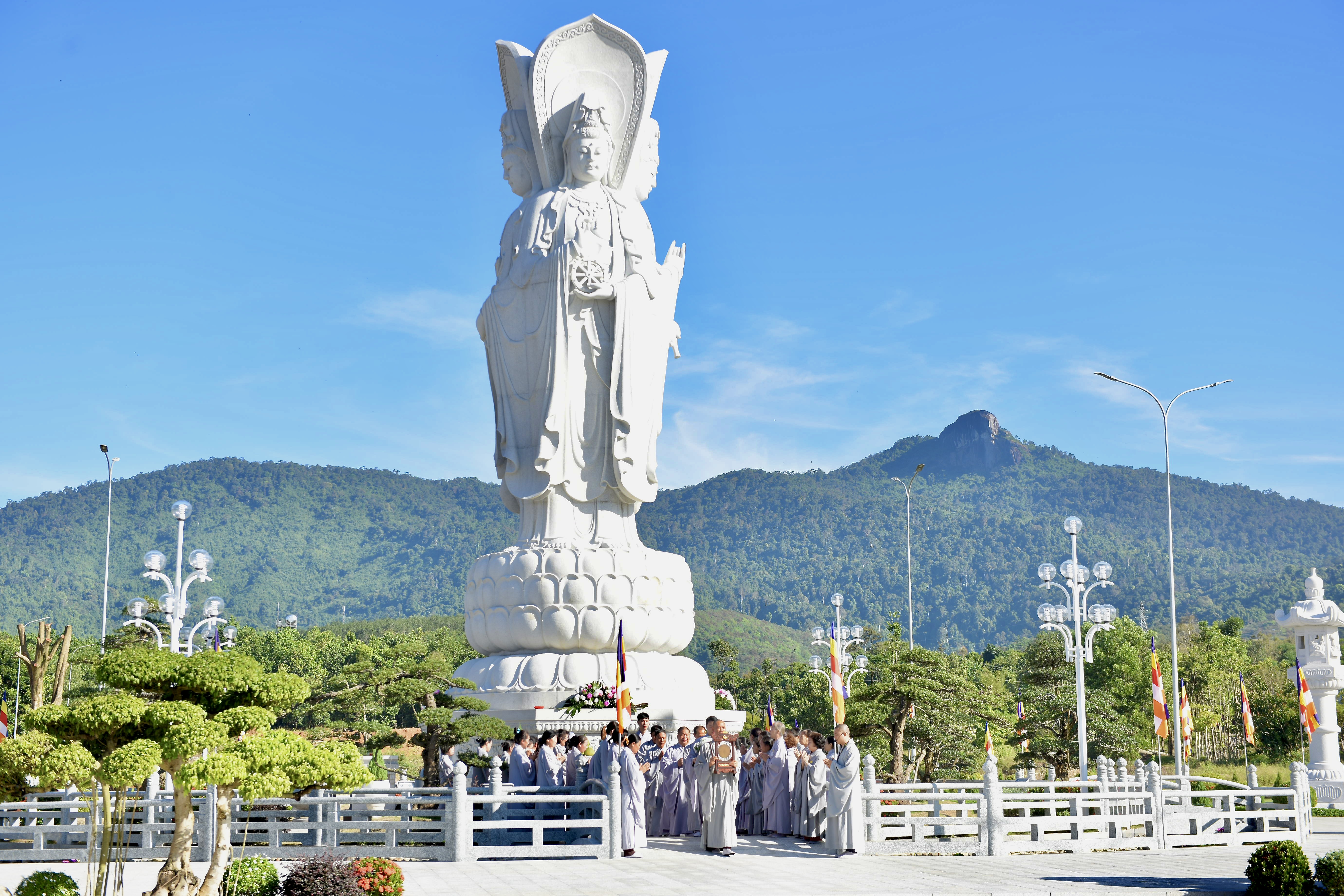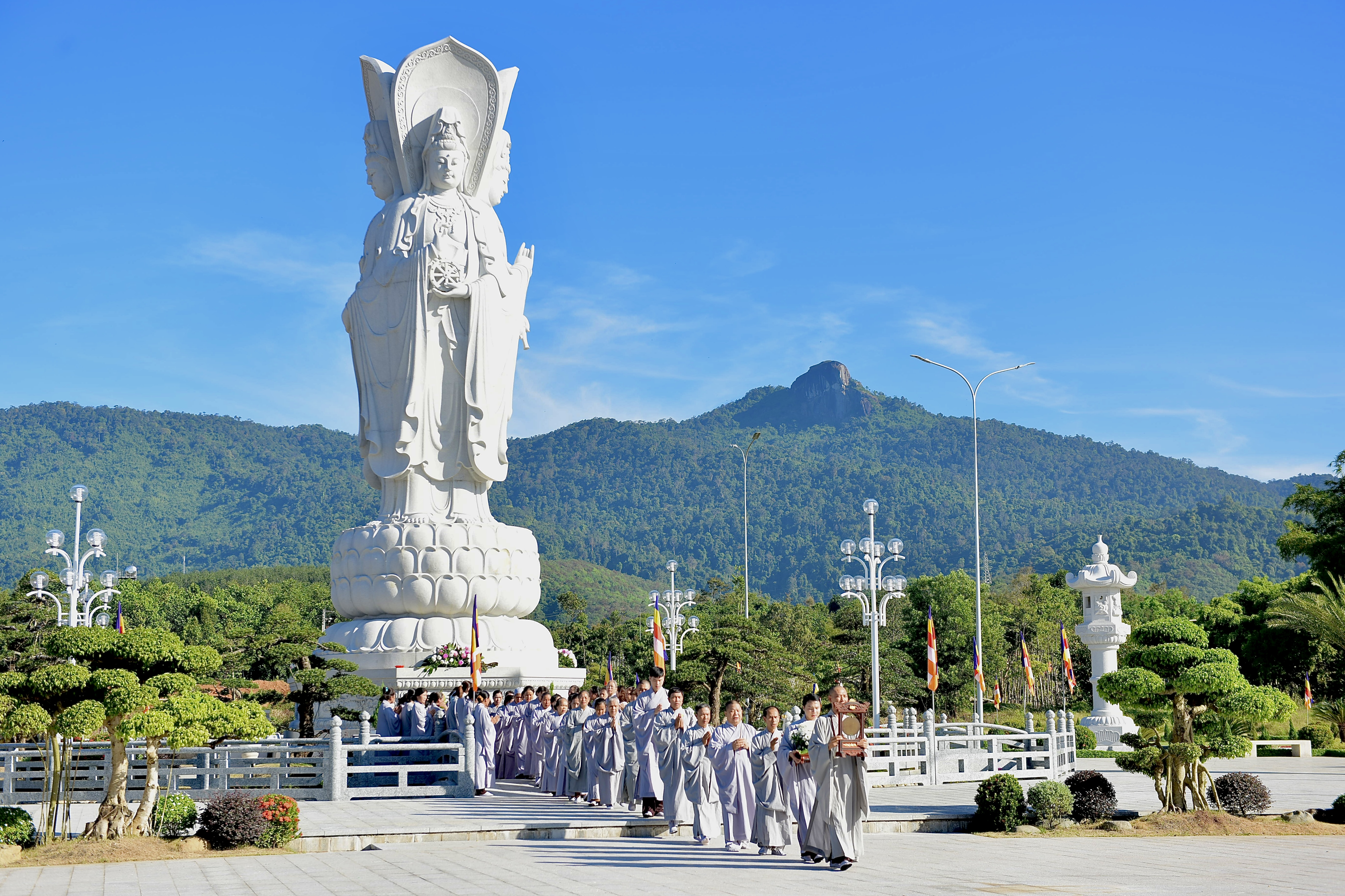 Dai Tung Lam Hoa Sen Pagoda is a place for monks, nuns, lay practitioners, and Buddhist temples from various parts of the country to practice Pure Land Buddhism and seek rebirth in the Western Pure Land. Therefore, the ceremony of erecting the Three Gates on the occasion of the anniversary of Compassionate Father Amitabha Buddha's birth has the meaning of opening up the Pure Land for all people to have the opportunity to come to this sacred place to practice and return to the teachings of the Buddha, living in the righteous path and Dharma of the Buddha.