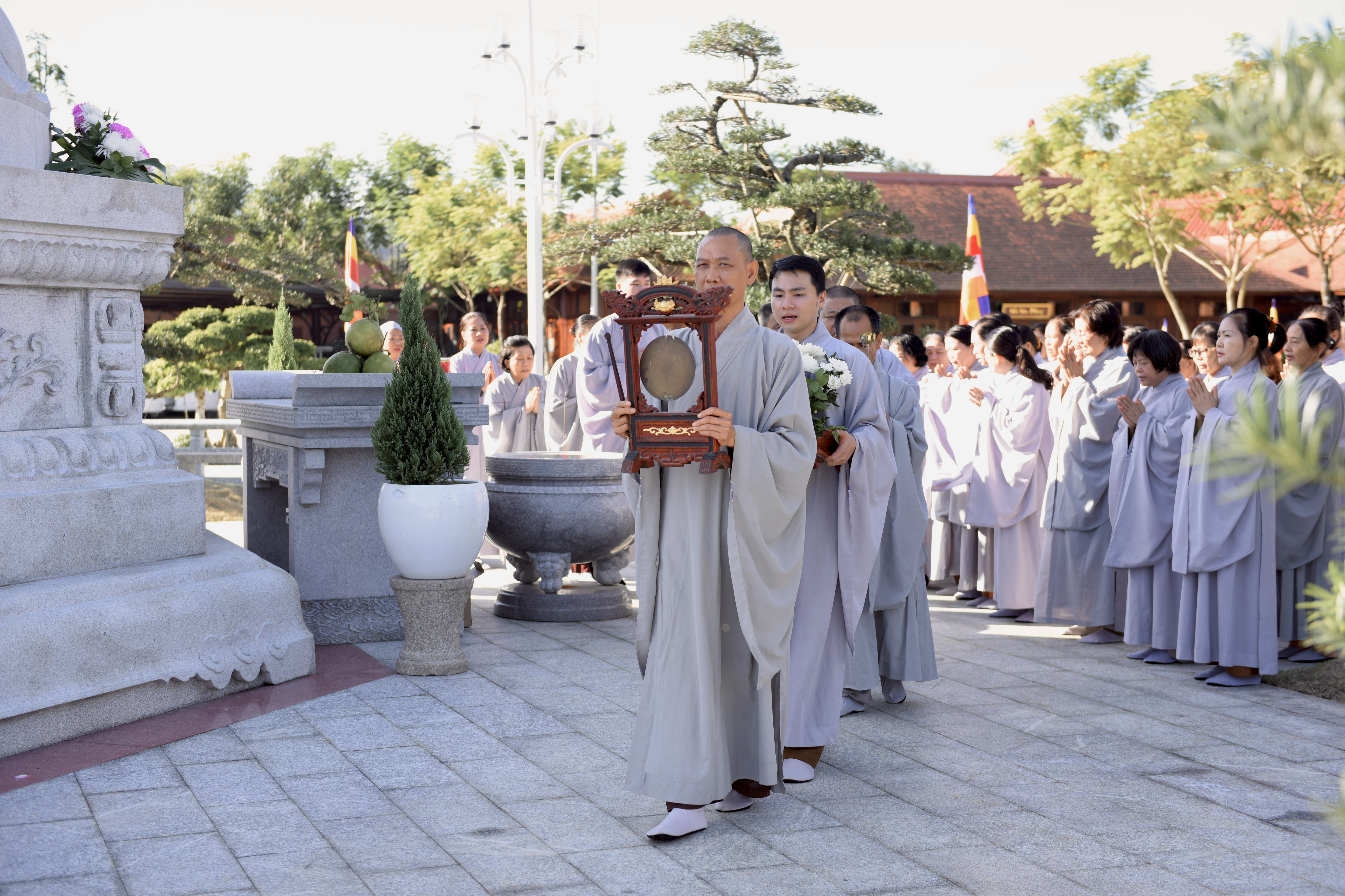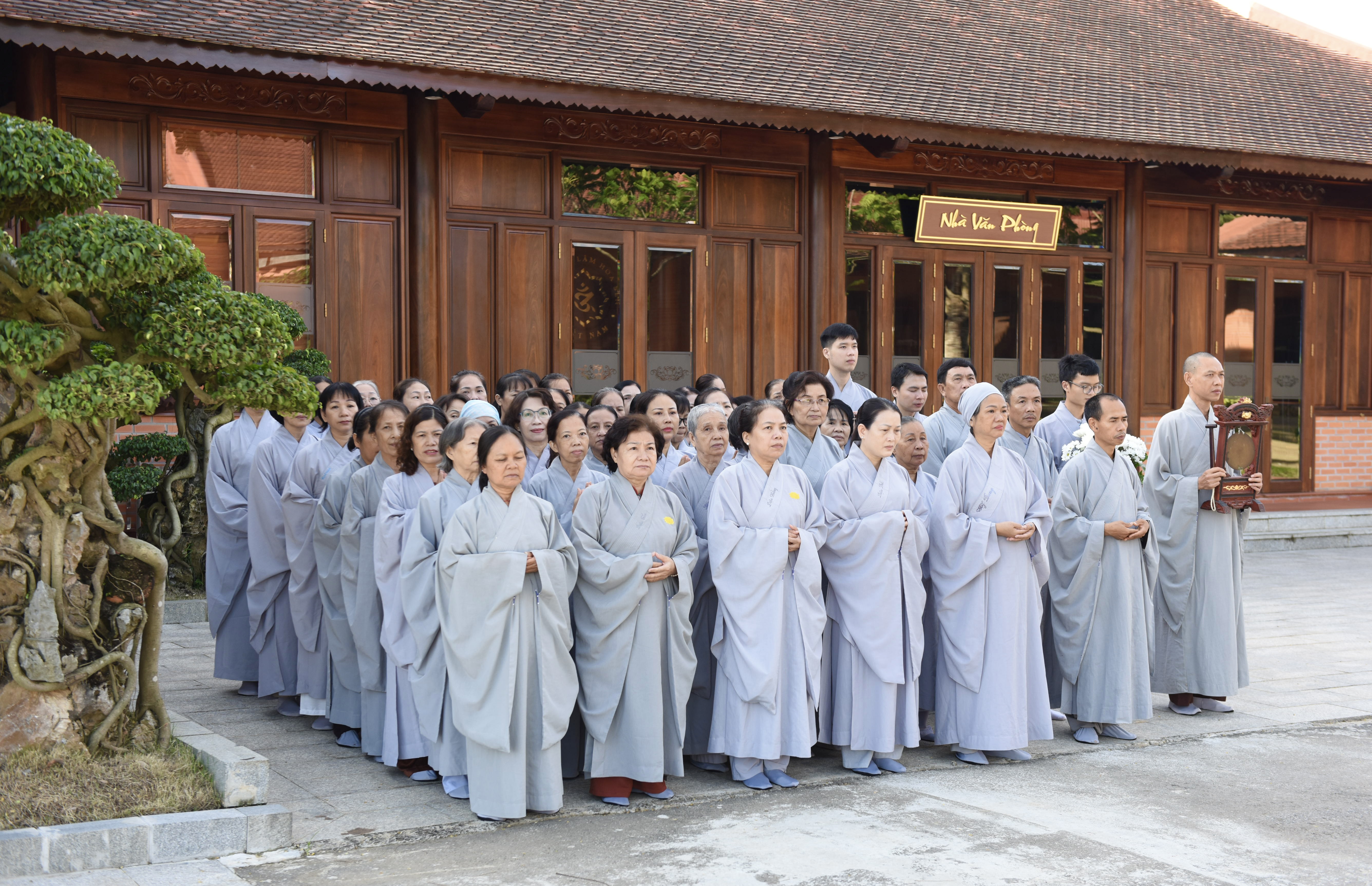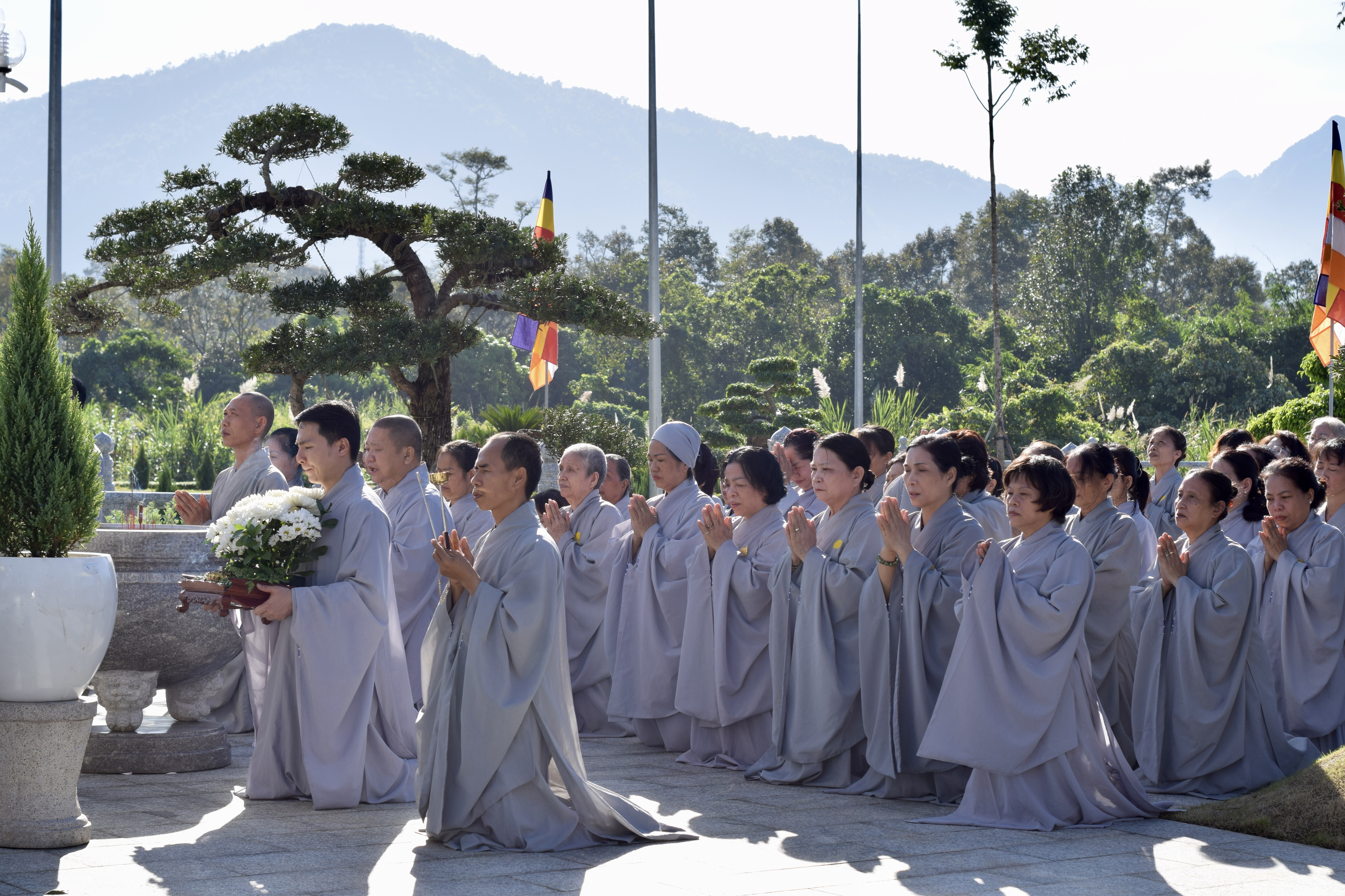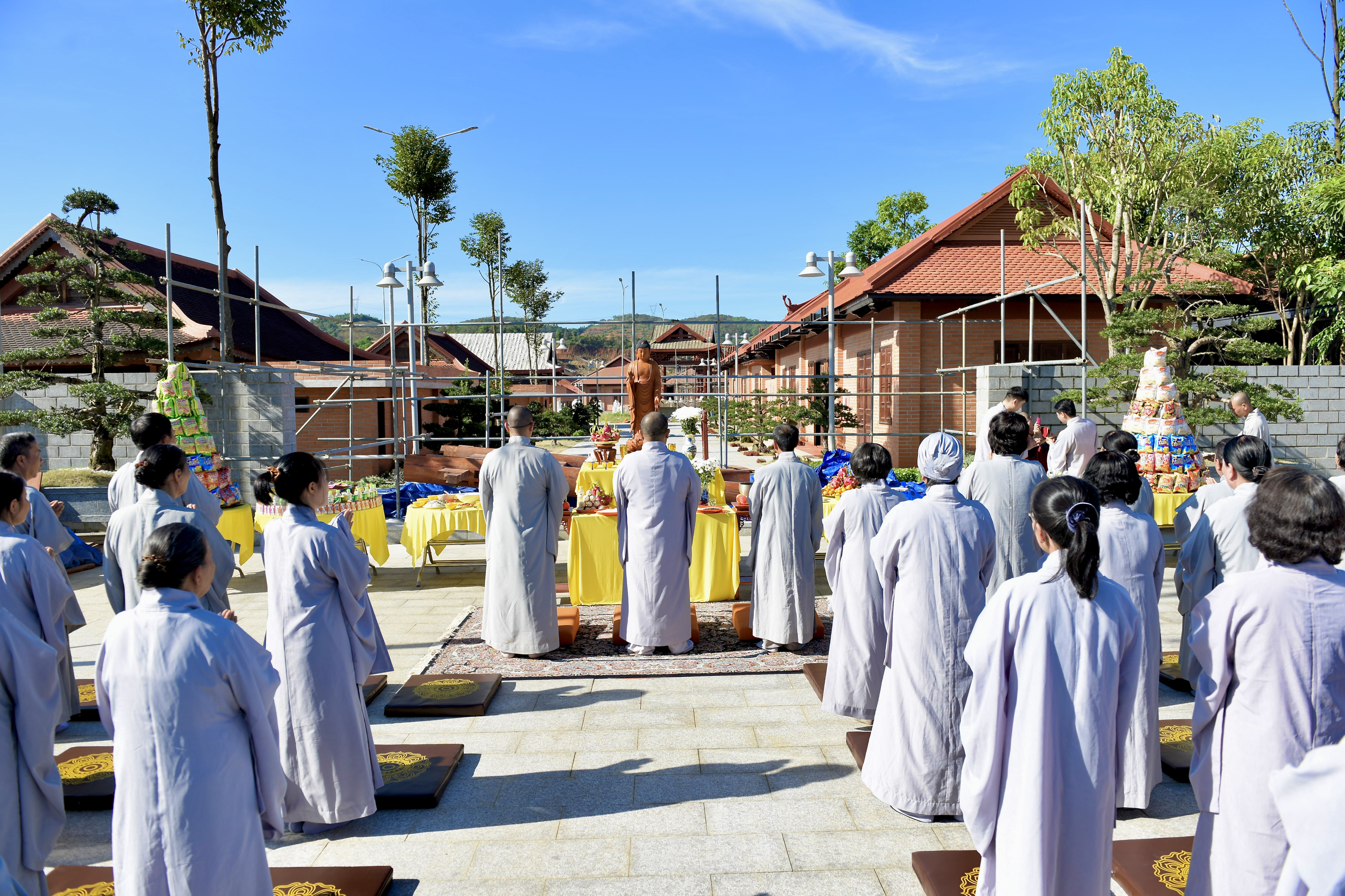 The entire ashram solemnly holds the ceremony to erect Dai Tung Lam Hoa Sen gate