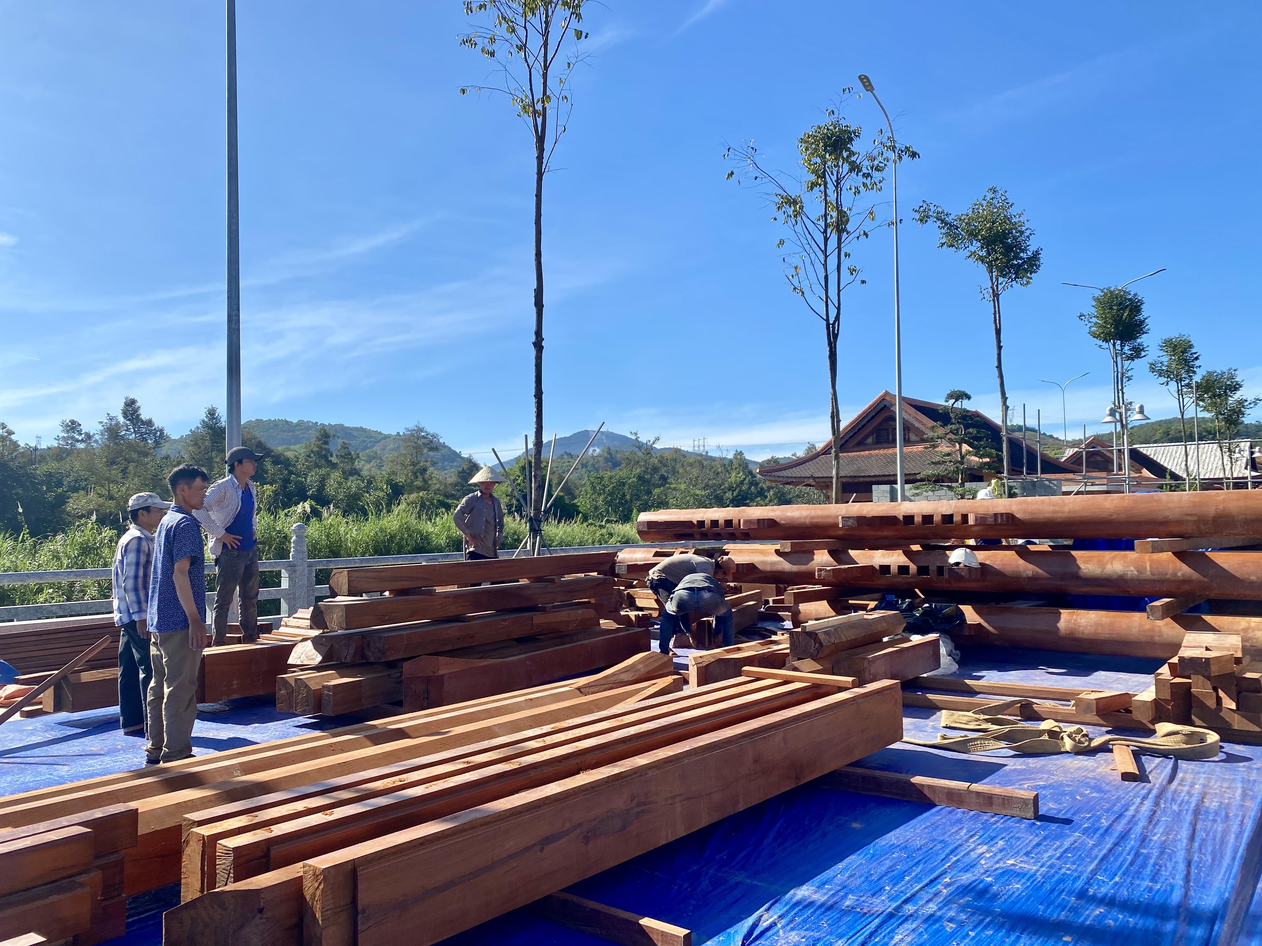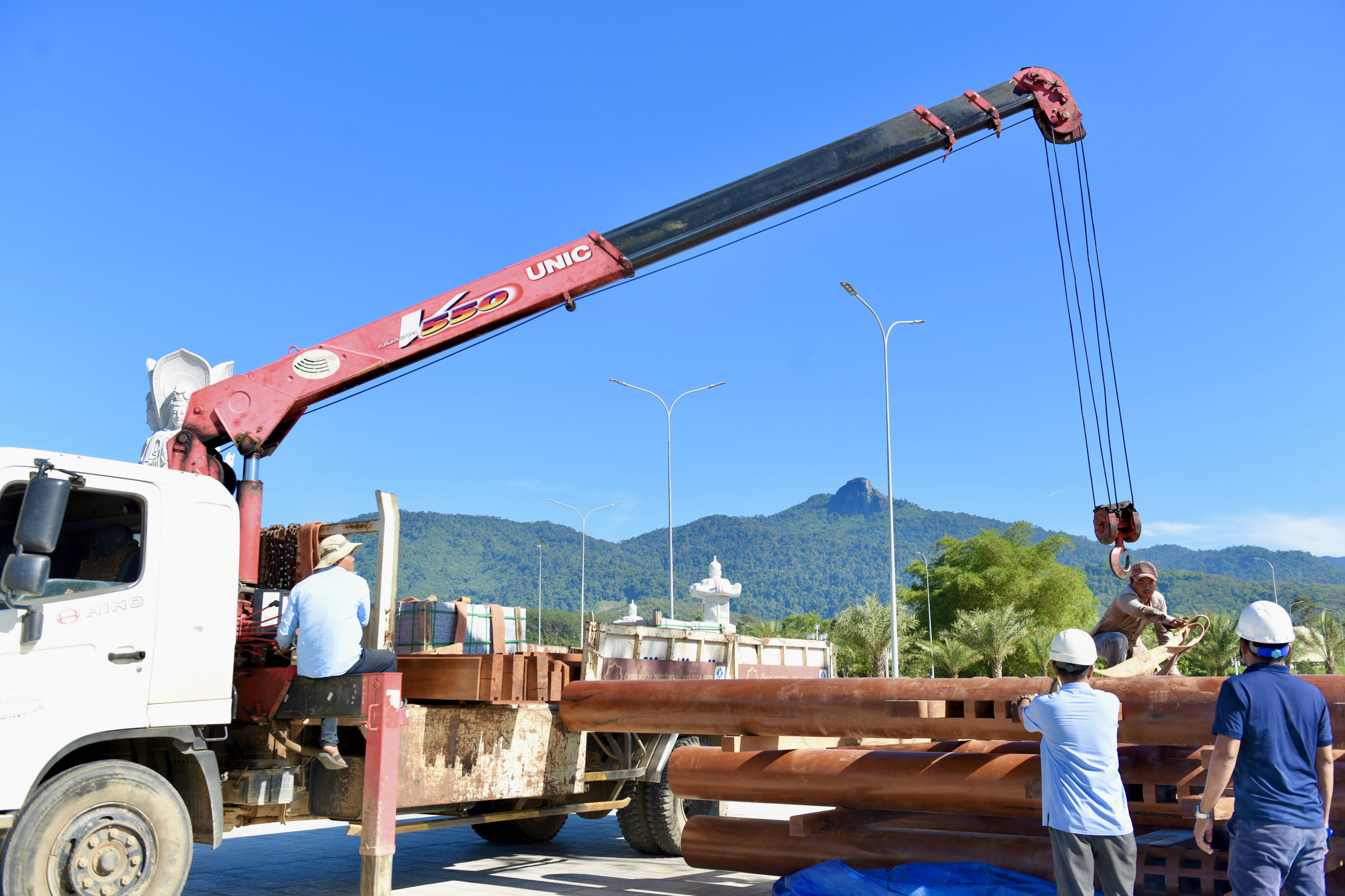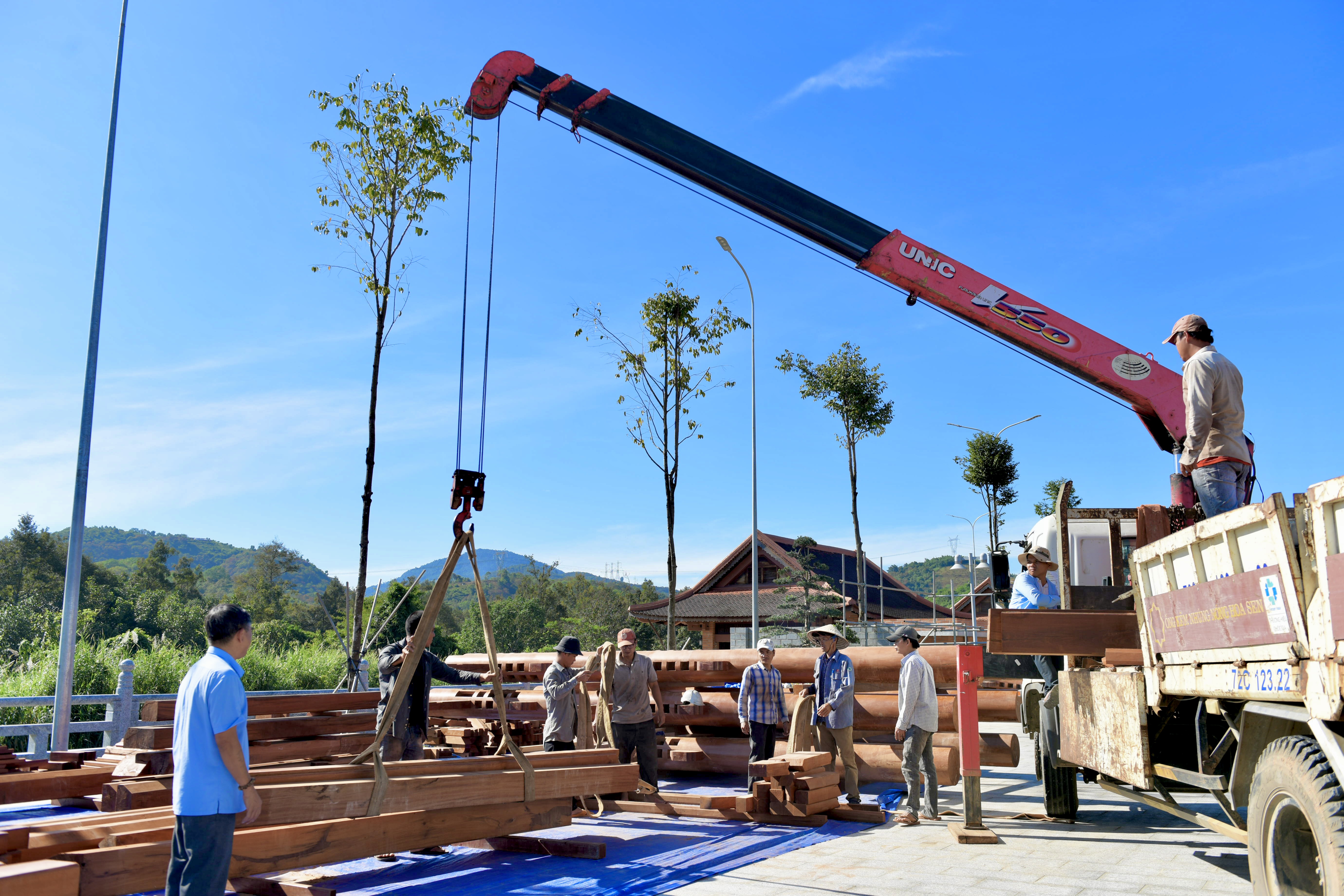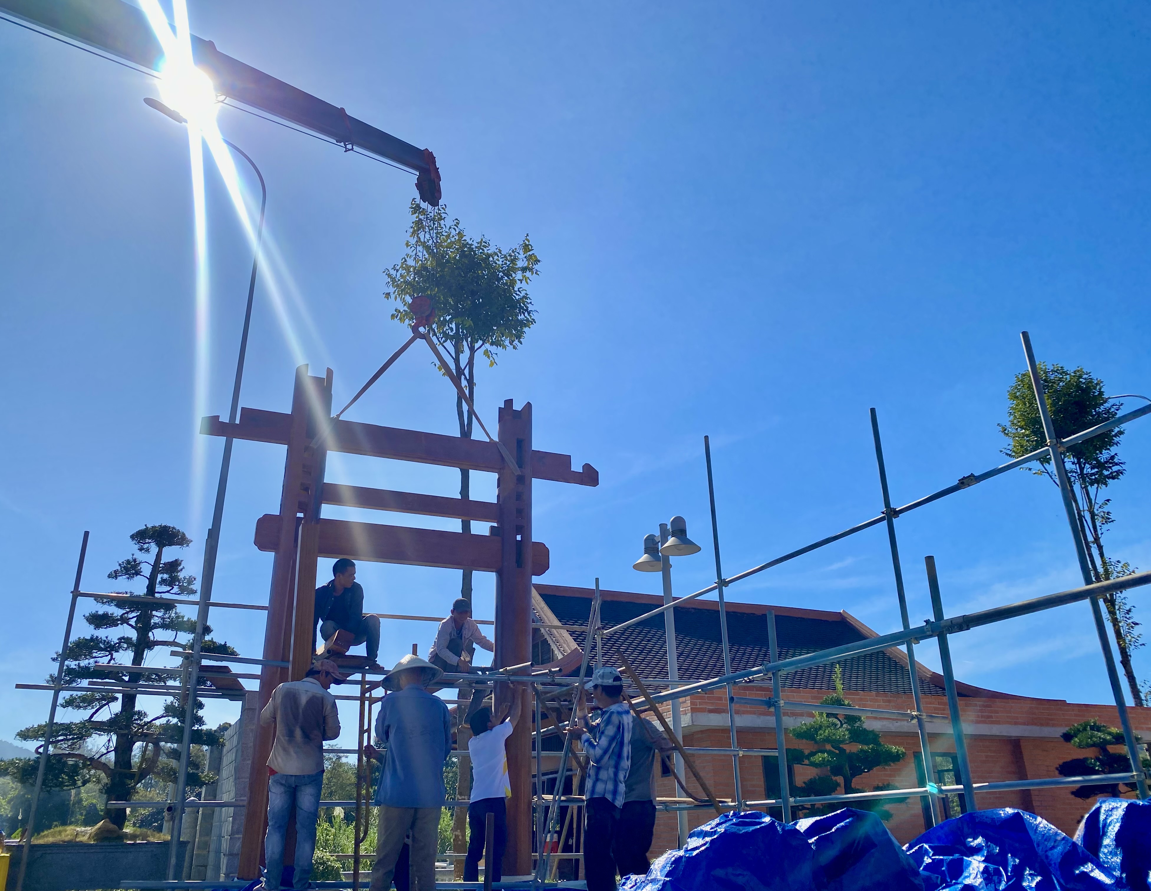 After performing the ritual of offering incense to the white Buddha and reciting prayers, the gate of Dai Tung Lam Hoa Sen officially began its construction process and is expected to be completed by the beginning of the year 2023